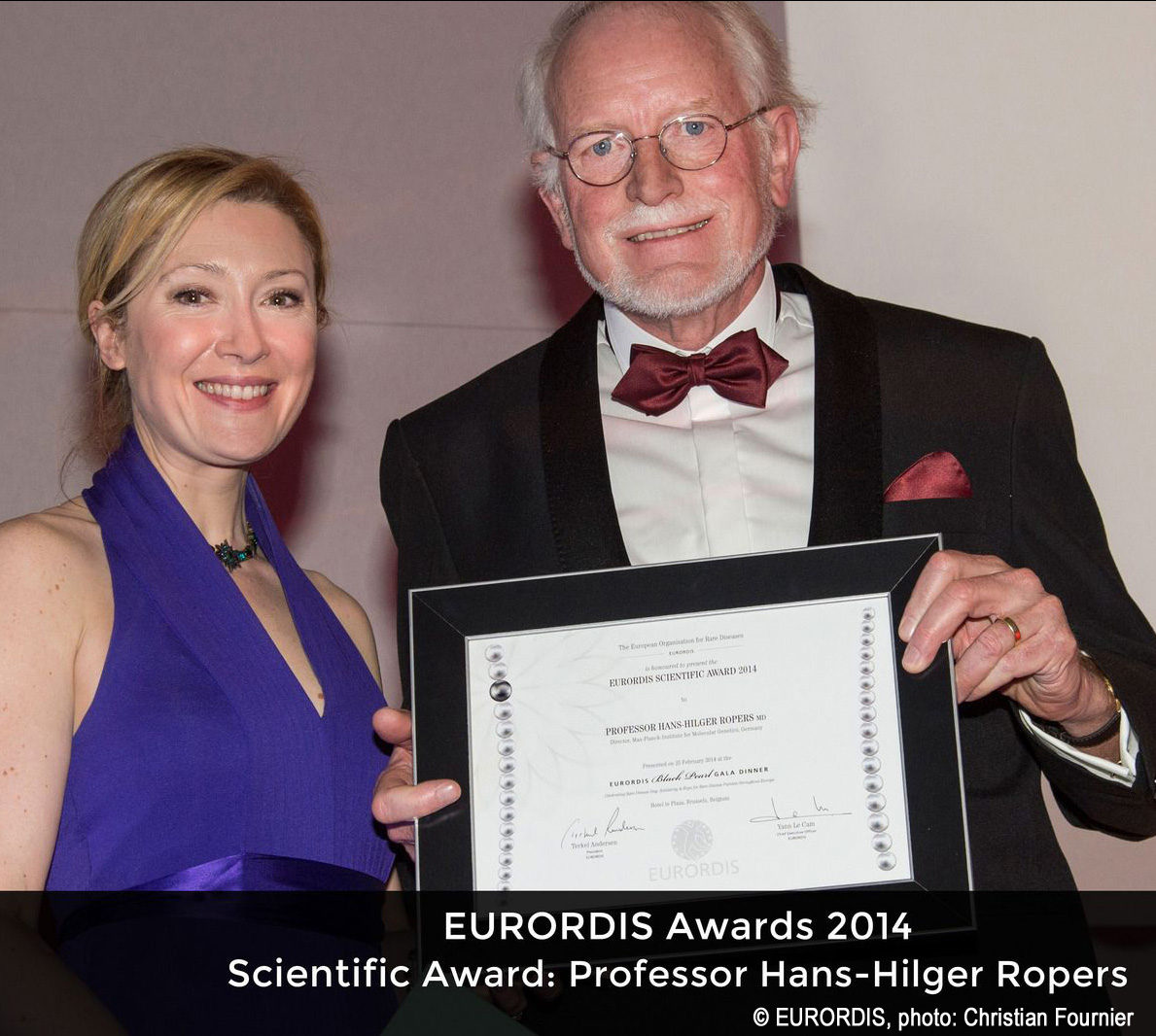 Hans-Hilger Ropers, Direktor am Max-Planck-Institut für molekulare Genetik in Berlin, ist für seine herausragenden Forschungsarbeiten über die Ursachen von seltenen, monogen bedingten Störungen sowie seinen unermüdlichen Einsatz im Kampf gegen seltene Krankheiten mit dem „EURORDIS Scientific Award 2014“, dem Wissenschaftspreis der Europäischen Organisation für seltene Krankheiten, geehrt worden. Der Preis wurde am 25. Februar 2014 in Brüssel verliehen.