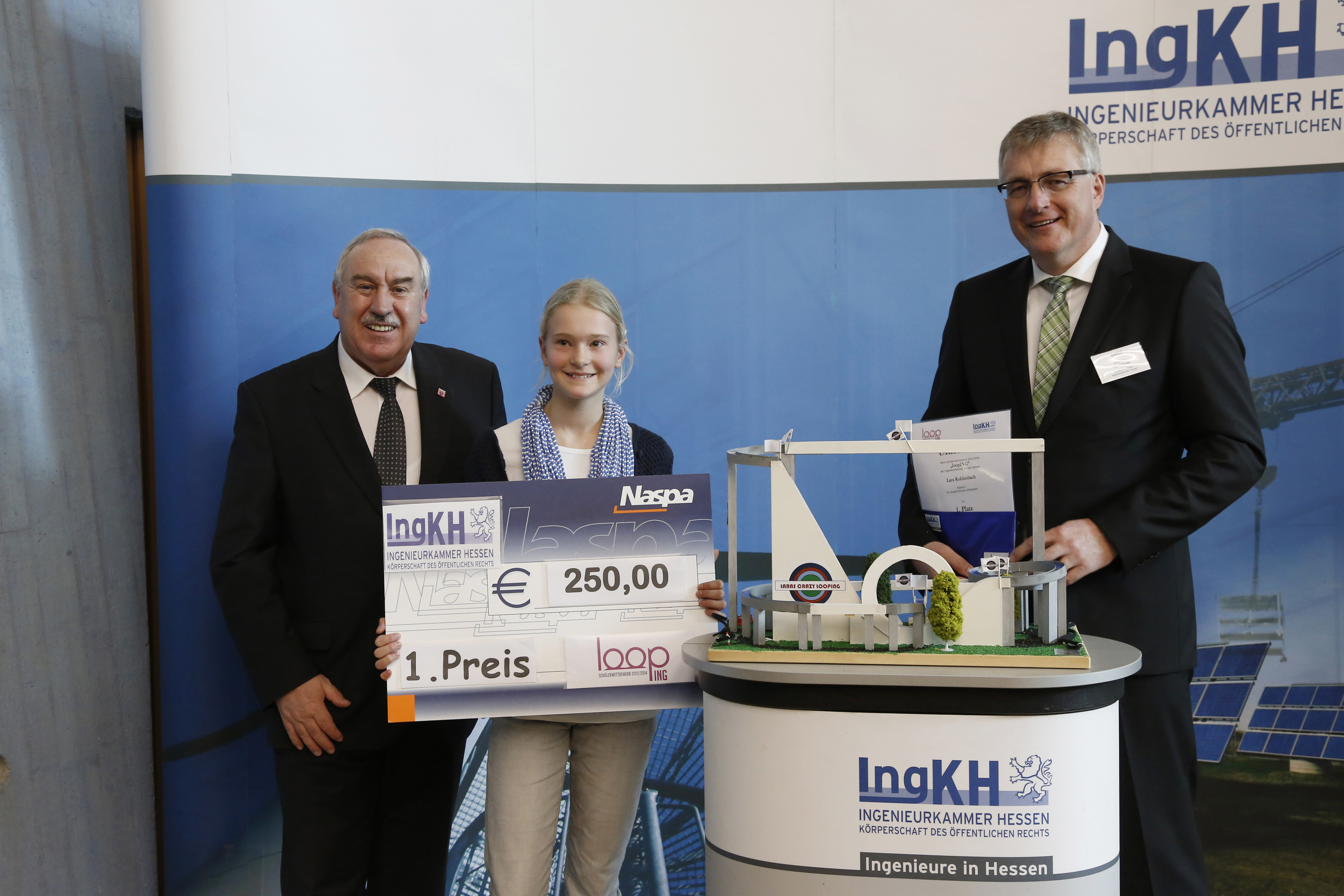 In Hessen steht der Schülerwettbewerb "loopING" unter der Schirmherrschaft von Kultusminister Prof. Dr. R. Alexander Lorz. Die Ingenieurkammer Hessen hat für das Schuljahr 2013/2014 zum siebten Mal den Schülerwettbewerb für junge und kreative Ingenieurtalente ausgelobt. Die Wettbewerbsaufgabe für die Schülerinnen und Schüler war der Entwurf einer Achterbahn und der Bau im Modell. Loopings, Kurven, etc. – Phantasie war gefragt. Die Achterbahn sollte aus Fahrbahn und Tragkonstruktion bestehen, maßstäbliche Vorgaben mussten eingehalten werden.