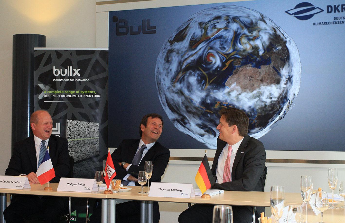 „Im Rahmen des heute unterzeichneten Vertrags werden das DKRZ und Bull ebenfalls bei der Skalierungsverbesserung von Klimamodellen und der hierfür erforderlichen Algorithmen kooperieren. Die bei der Klimasimulation entstehenden riesigen Datenmengen sind nur in den Griff zu bekommen, wenn nicht nur die Hardware, sondern auch die Software effizient arbeitet“, so Ludwig weiter.