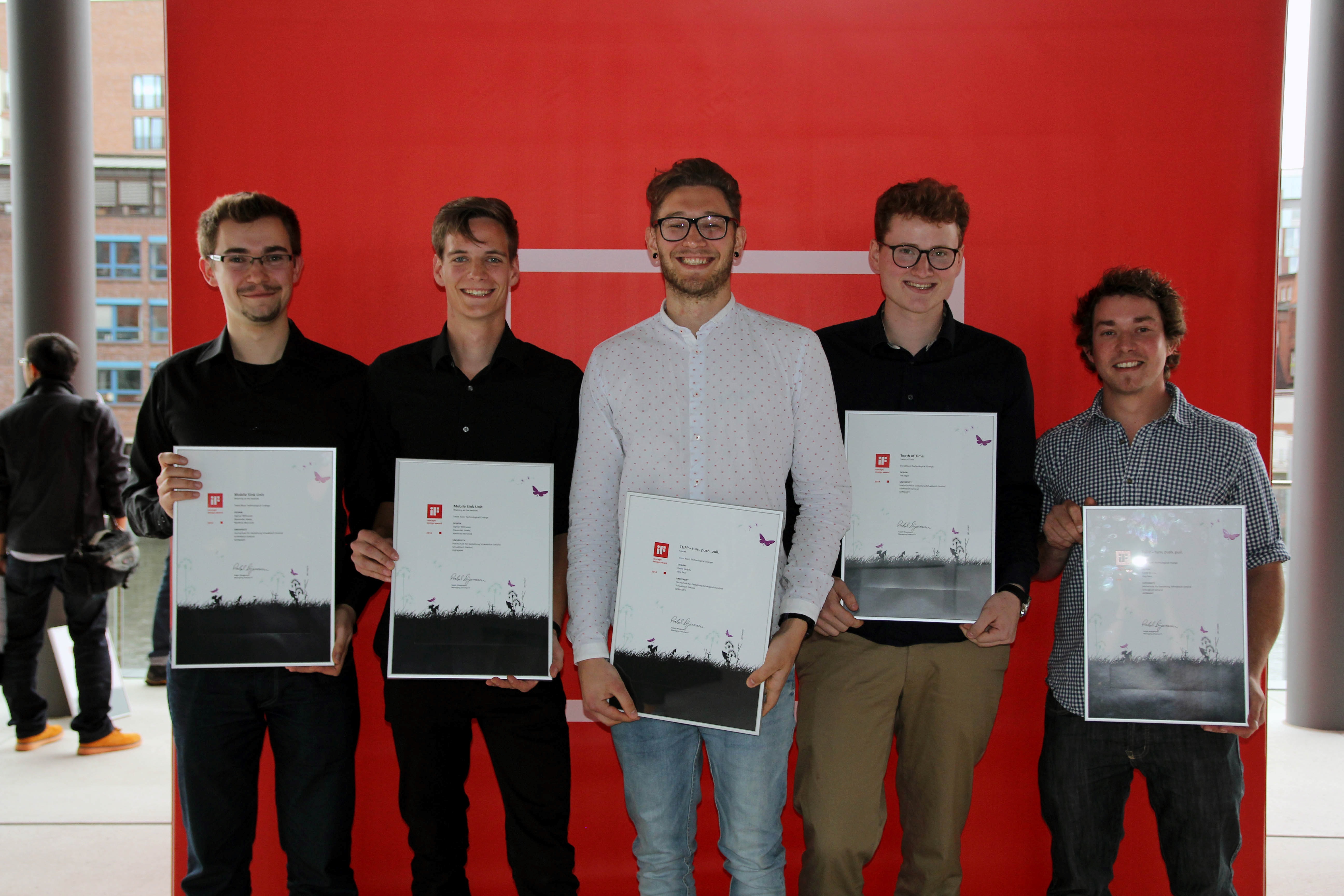 Über eine Auszeichnung mit dem iF concept design award 2014 können sich gleich mehrere HfG-Studenten im Studiengang Produktgestaltung freuen. Während Tim Jäger den Preis für sein Uhrenkonzept „Tooth of Time“ erhält, überzeugten Alexander Abele und Matthias Morcinek mit ihrem Waschwagen „Mobile Sink Unit“. David Wojcik und Jörg Saur waren mit dem Wasserhahn-Projekt „Tupp - turn. push. pull“ erfolgreich. In Hamburg nahmen die Studierenden jetzt ihre Auszeichnungen entgegen.