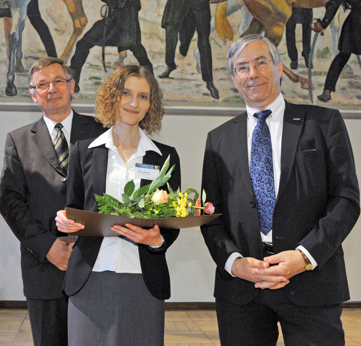Anlässlich des diesjährigen ‚Schillertages‘ der Universität Jena wurde Prof. Dr. Jessica Schmidt, LL.M. am 27. Juni 2014 für die beste Habilitation des zurückliegenden Jahres ausgezeichnet. Die Rechtswissenschaftlerin, die seit April 2014 an der Universität Bayreuth Inhaberin des Lehrstuhls für Bürgerliches Recht, deutsches, europäisches und internationales Unternehmens- und Kapitalmarktrecht ist und damit das Profil der Universität Bayreuth im Unternehmensrecht stärkt, erhielt den Habilitationspreis für ihre Arbeit ‚Der Vertragsschluss – deutsches, französisches, englisches Recht und CESL im Vergleich‘.