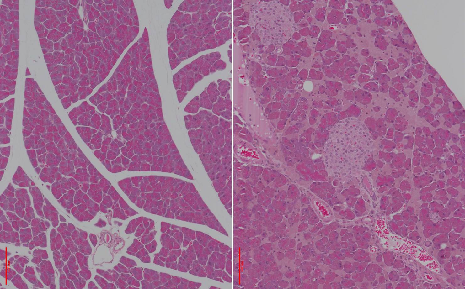 Bei den Mäusen ist ein einzelner Baustein, eine sogenannte Aminosäure, des Proteins Ferroportin ausgetauscht. „Diese kleine Veränderung stört die Interaktion zwischen Hepcidin und Ferroportin empfindlich und hat dramatische Auswirkungen auf den gesamten Eisenstoffwechsel“, erklärt Dr. Sandro Altamura (Universitätsklinikum Heidelberg), der das Tiermodell gemeinsam mit Dr. Bruno Galy (EMBL) entwickelt hat. Das Tiermodell soll nun dabei helfen, die Mechanismen der Hepcidin-Resistenz insgesamt besser zu verstehen. Im Tierversuch litt die Bauspeicheldrüse am meisten unter dem massiven Eisenüberschuss. Beim Menschen wird das Drüsengewebe zwar auch schwer geschädigt, allerdings schreitet die Zerstörung langsamer voran. „Durch den schnelleren Krankheitsverlauf im Mausmodell haben wir nun erstmals die Möglichkeit, die schädliche Wirkung des Eisens auf das Drüsengewebe des Pankreas genauer zu untersuchen und Ansatzpunkte für vorbeugende Therapien zu entwickeln“, so der Biologe.