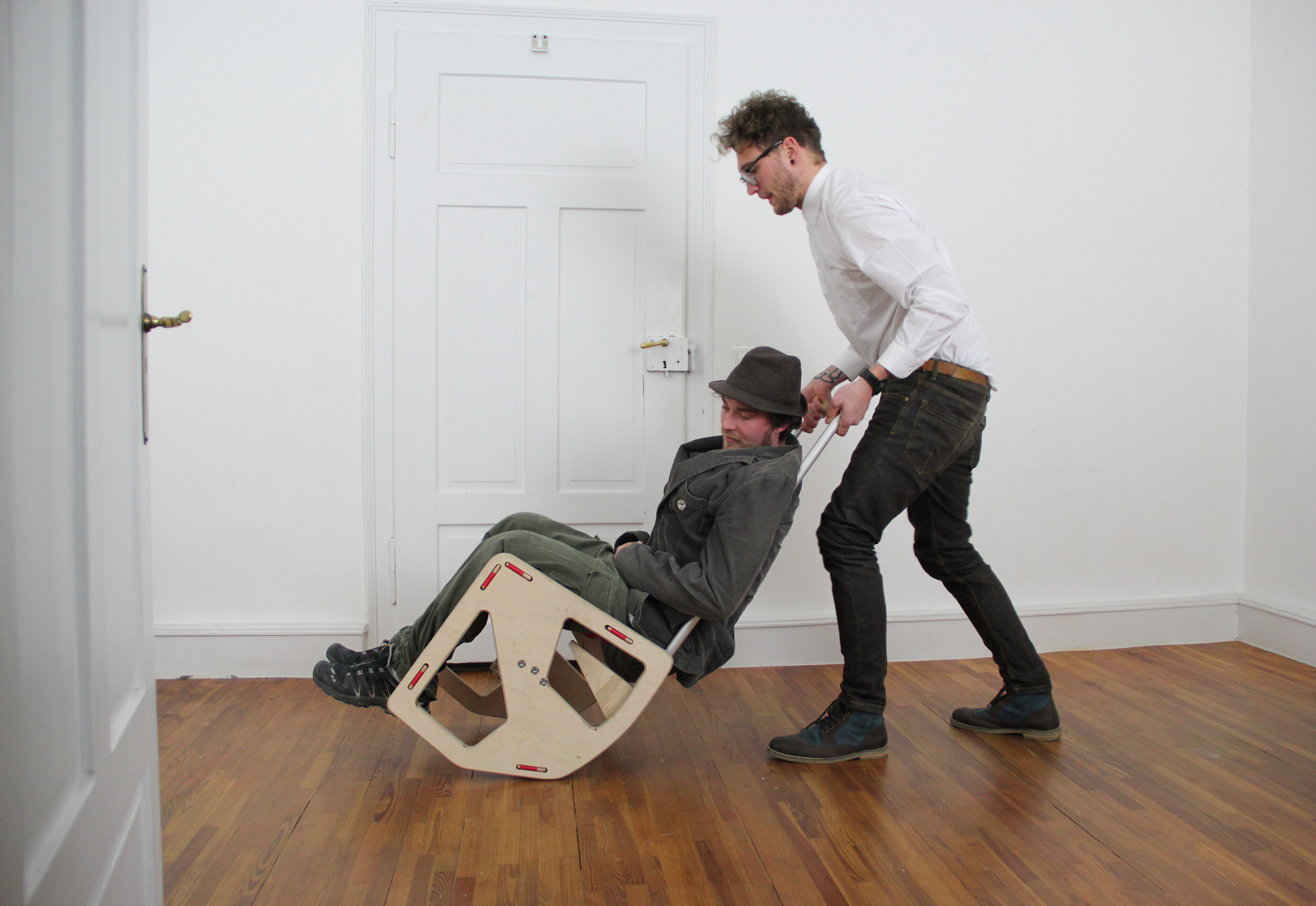 Das ebenfalls mit dem Mia Seeger Preis 2014 ausgezeichnete Ergonomieprojekt der Studenten Robin Weidner, David Woijcik und Jörg Saur entstand unter der Leitung von Prof. Dr. Jürgen Held. Mit „HEBIX“ entwickelten sie eine verblüffend plausible Aufstehhilfe für den Fall, dass man einen am Boden liegenden Menschen wieder aufrichten möchte. Man klappt die Aufstehhilfe auseinander, platziert sie unter die angewinkelten Beine des Gestürzten, und kann ihn nun durch zwei Hebel in eine Sitzposition oder in den Stand bringen. Die Jury des Mia Seeger Preises meint dazu: „Erstaunlich, wie weit der Kraftaufwand vermindert werden konnte. Das alles entscheidende aber ist, dass zuvor ein Weg von der Liege- in die Sitzposition gefunden wurde, die dann stabil gehalten wird, bis der Rest wie das Aufstehen vom Stuhl geht. Ein ernstes Problem ist gelöst. Die Aufstehhilfe ist platzsparend aufzubewahren; Mechanik und Handhabung sind unkompliziert – kaum gesehen, schon gelernt. Zu Recht nimmt der Entwurf ein weites Einsatzfeld in Aussicht: private Wohnungen, Alters- und Pflegeheime, Krankenhäuser.“
