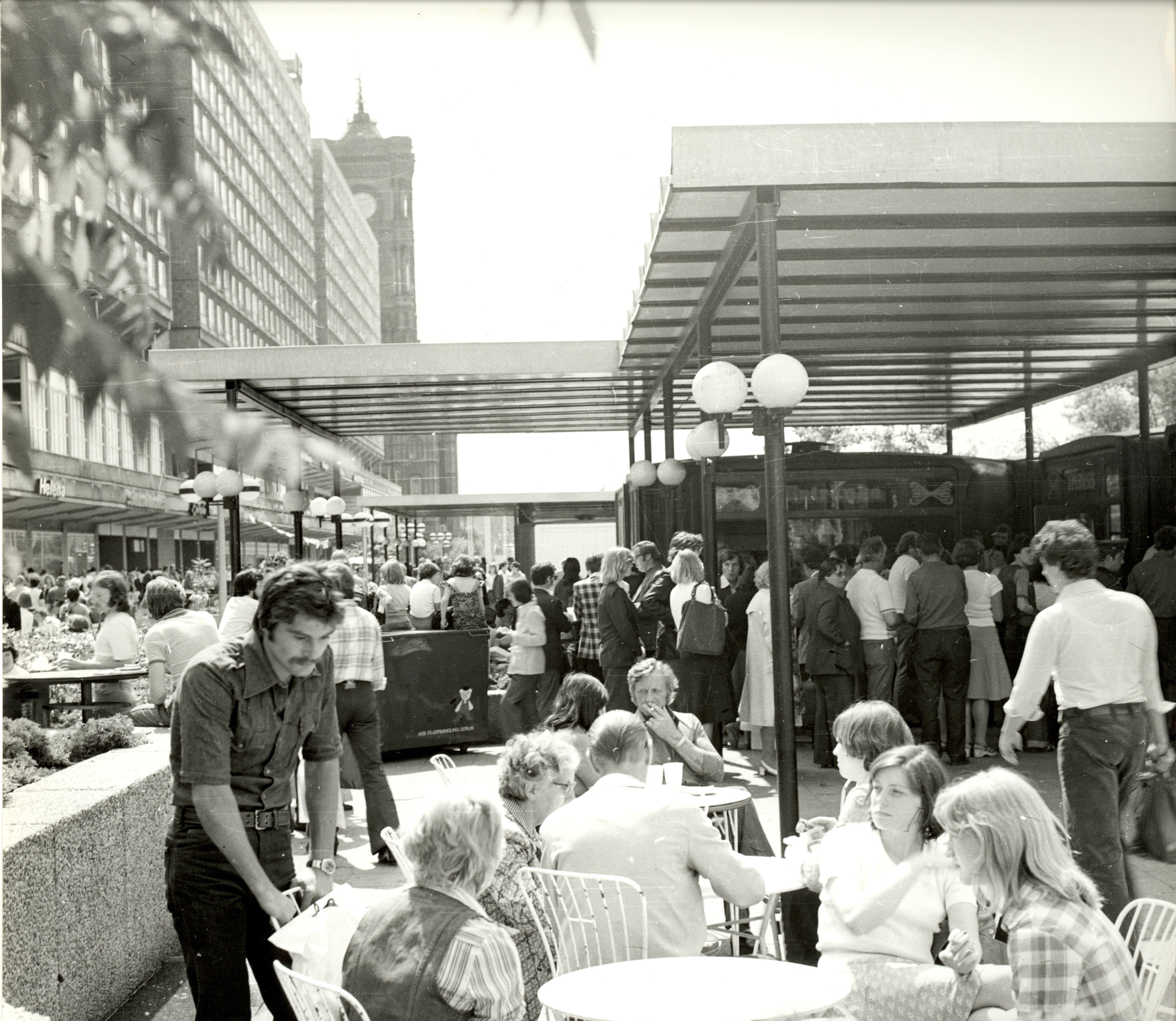 „Wir haben uns im Projekt insbesondere die Aneignung beider Plätze angeschaut, also über Fotos, Filme und Alltagsbeschreibungen rekonstruiert, wie die Bürger sie genutzt haben und wie die Identitäten geformt wurden“, sagt Engler. Auch hier sieht er Gemeinsamkeiten: Der Konsum- und Freizeitnutzung folgte in den 70er und 80er Jahren eine nennenswerte Aneignung durch subkulturelle, oppositionelle und sozial vermeintlich randständiger Gruppen. Am Breitscheidplatz formierten sich Proteste in der Anti-Vietnam-Ära, auch die Studentenproteste suchten teilweise explizit diesen Ort auf. Dazu kamen „Gammler“ und Drogenabhängige, die immer wieder im Konflikt mit der West-Berliner Polizei standen. Am Alexanderplatz spielte sich – mit anderer Nuancierung durch den DDR-Kontext – Vergleichbares ab: Die Skaterszene um den Fernsehturm trug anarchische Elemente in die Nutzung ein, es bildete sich eine Schwulenszene um die Besenbar heraus und Punks suchten den Alexanderplatz explizit als Bühne. Hier reagierte die sozialistische Ordnungsmacht allerdings durch harte Polizeieinsätze und „Alex-Verbote“, die im Pass eingetragen wurden, und mit einer deutlich intensiveren Überwachung des Platzes. „Die politische Zuspitzung durch die Demonstrationen Ende der 80er Jahre ist natürlich eine einmaliges Phänomen am Alexanderplatz“, so Engler.