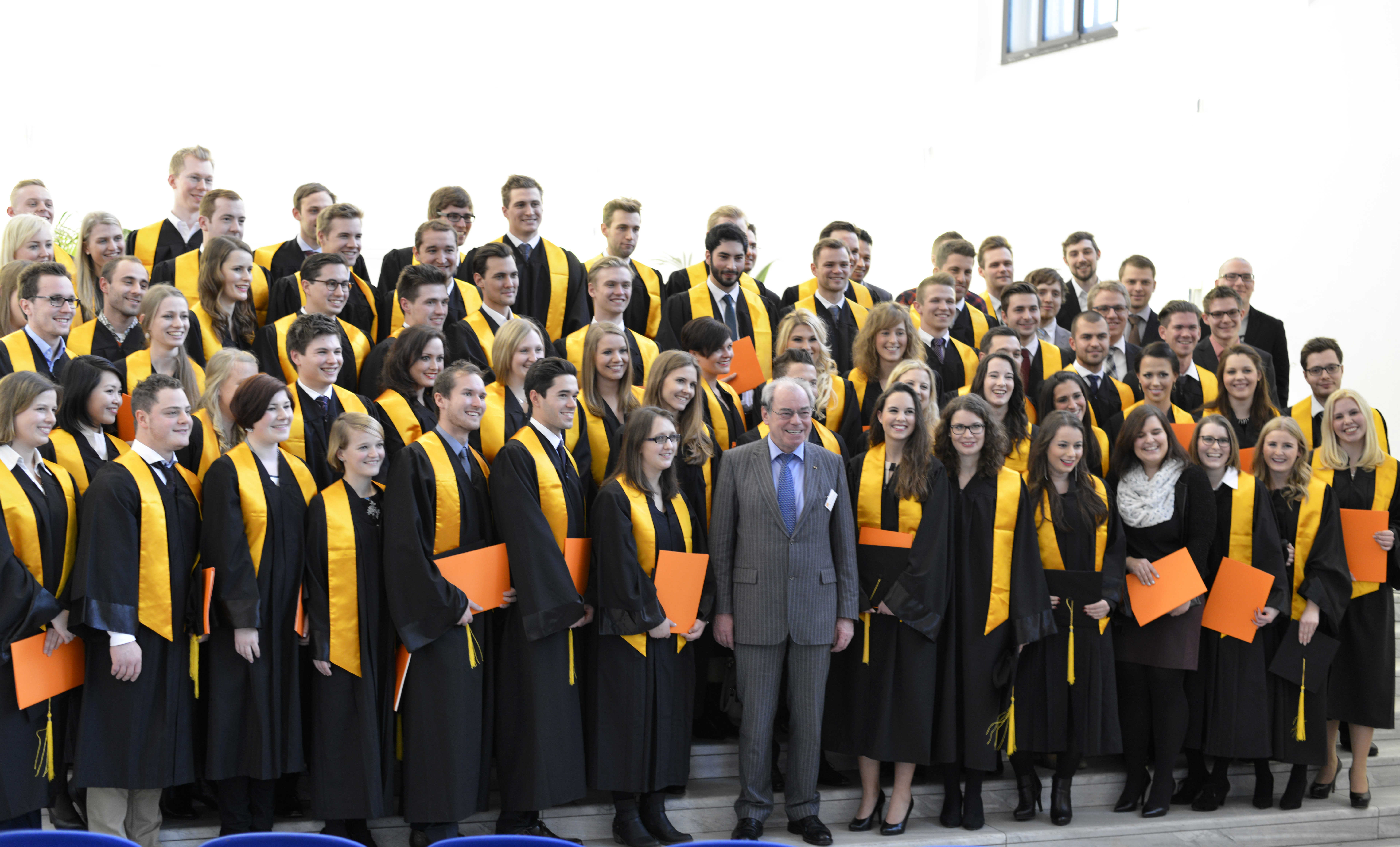 „Vor drei Jahren bei der Feier zum Studienstart habe ich Ihnen gesagt, dass es nicht einfach, sondern herausfordernd und spannend wird an der EUFH“, sagte Prof. Dr. Hermann Hansis, Vizepräsident für Duales Studium, "jetzt haben Sie es geschafft und können wirklich stolz auf sich sein. Mit besten Chancen starten Sie ins Berufsleben, weil Sie in vielen Bereichen in Ihrem Unternehmen schon heute unmittelbar einsetzbar sind." Prof. Hansis gratulierte den Absolventen und bedankte sich auch bei allen herzlich, die sie während der vergangenen drei Jahre auf verschiedene Weise unterstützt haben, etwa im Unternehmen während der Praxisphasen, an der Hochschule während der Theoriephasen oder auch ganz privat im Familien- und Freundeskreis.