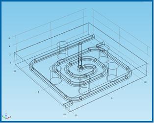 Die Herausforderung im Rahmen dieses Forschungsprojektes war die thermische und fluidische Kopplung zweier bereits existierender Technologien: der Chipkalorimetrie und der Tropfen-basierten Mikrofluidik. Hierzu mussten eine neue Messkammer (siehe Abb.1), in welcher die Probe vermessen wird, und ein Wärmeaustauscher (siehe Abb. 2), der eine konstante Temperatur der Probe einstellt, entwickelt werden. Diese neuen Komponenten garantieren hydrophobe Oberflächen der Mikrokanäle und vermeiden Strömungsinhomogenitäten, zwei wesentliche Voraussetzungen für störungsfreies Durchleiten der Probentropfen durch das Chipkalorimeter. Zudem mussten die Flow-Parameter sowie das Temperaturmanagement des Kalorimeters den Eigenschaften der Mikrofluidik angepasst und optimiert werden. Volumenströme im Bereich von 10µL/min bis 100µL/min und Volumina der Probentropfen im Bereich von 40µL bis 80µL ergaben die besten Ergebnisse hinsichtlich der Signalauflösung. Durch die automatisch ablaufenden Prozessschritte der modular aufgebauten und dem Chipkalorimeter vorgeschaltetem Mikrofluidikplattform ist es möglich, zwischen die Probensegmente je nach Bedarf Kalibrier- oder Reinigungstropfen zu injizieren. Das Generieren und Konditionieren der Probentropfen erfolgt mittels einer Zweifluidsonde die Bestandteil der Mikrofluidikplattform ist.