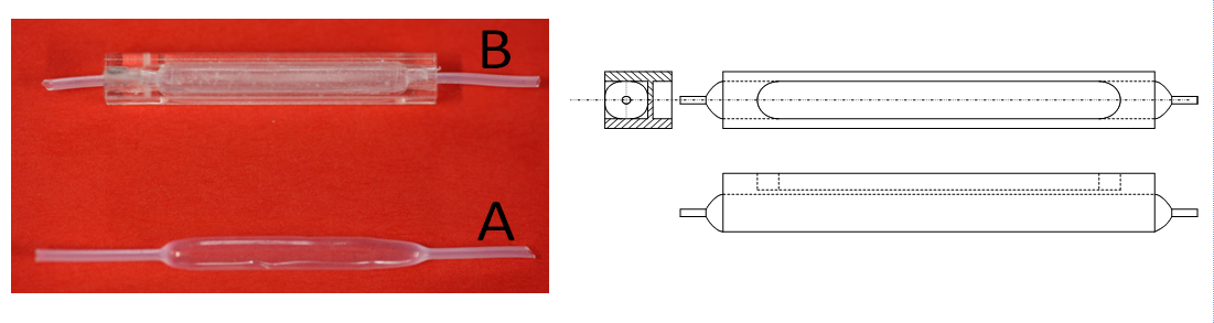 Die Herausforderung im Rahmen dieses Forschungsprojektes war die thermische und fluidische Kopplung zweier bereits existierender Technologien: der Chipkalorimetrie und der Tropfen-basierten Mikrofluidik. Hierzu mussten eine neue Messkammer (siehe Abb.1), in welcher die Probe vermessen wird, und ein Wärmeaustauscher (siehe Abb. 2), der eine konstante Temperatur der Probe einstellt, entwickelt werden. Diese neuen Komponenten garantieren hydrophobe Oberflächen der Mikrokanäle und vermeiden Strömungsinhomogenitäten, zwei wesentliche Voraussetzungen für störungsfreies Durchleiten der Probentropfen durch das Chipkalorimeter. Zudem mussten die Flow-Parameter sowie das Temperaturmanagement des Kalorimeters den Eigenschaften der Mikrofluidik angepasst und optimiert werden. Volumenströme im Bereich von 10µL/min bis 100µL/min und Volumina der Probentropfen im Bereich von 40µL bis 80µL ergaben die besten Ergebnisse hinsichtlich der Signalauflösung. Durch die automatisch ablaufenden Prozessschritte der modular aufgebauten und dem Chipkalorimeter vorgeschaltetem Mikrofluidikplattform ist es möglich, zwischen die Probensegmente je nach Bedarf Kalibrier- oder Reinigungstropfen zu injizieren. Das Generieren und Konditionieren der Probentropfen erfolgt mittels einer Zweifluidsonde die Bestandteil der Mikrofluidikplattform ist.