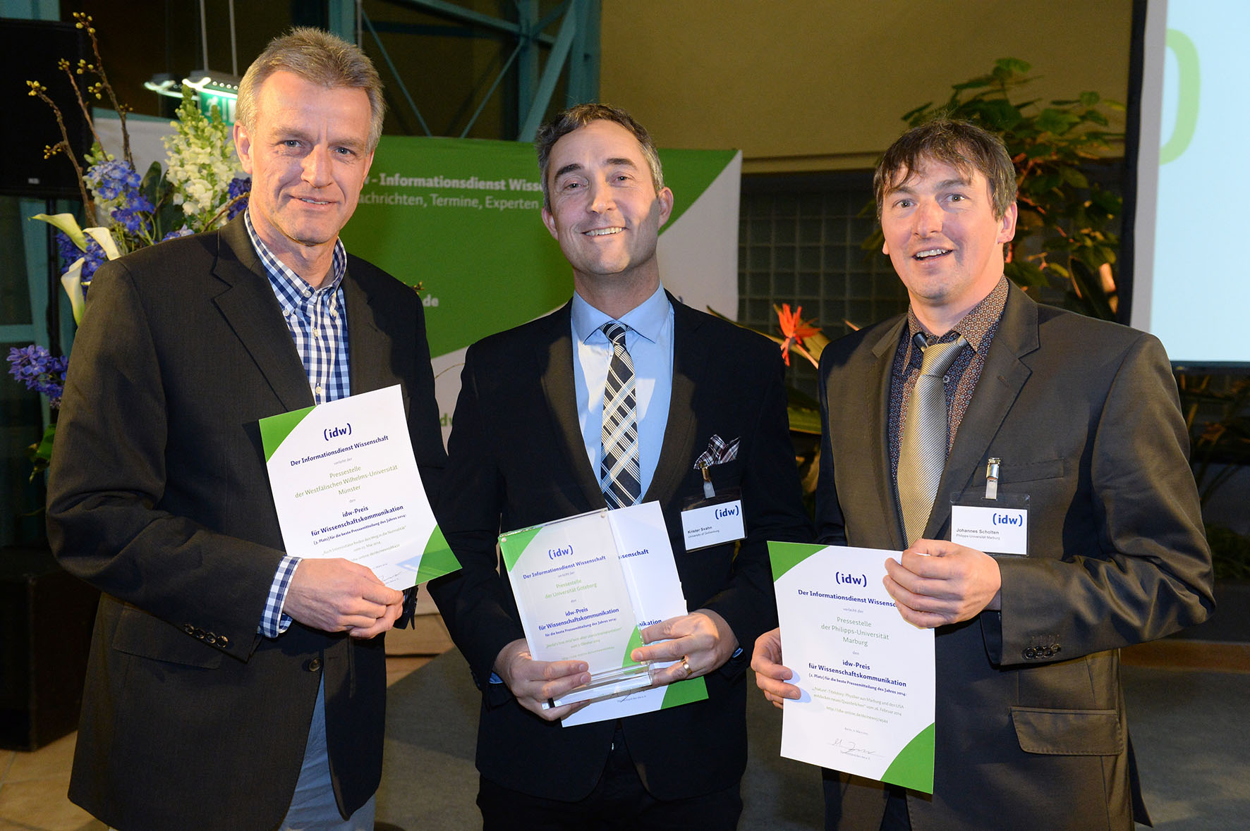 Der Informationsdienst Wissenschaft (idw) e. V. hat am 11. März 2015 die Pressestellen der Universität Göteborg, Marburg und Münster mit dem idw-Preis für Wissenschaftskommunikation 2014 ausgezeichnet. Nach Urteil der Jury veröffentlichten sie die drei besten Wissenschafts-Pressemitteilungen des zurückliegenden Jahres. Eine Rekordzahl von 85 Pressestellen aus Deutschland, der Schweiz, Österreich, Italien und Schweden hatte sich beteiligt. Erstmals geht Platz 1 an eine nicht deutschsprachige Pressemitteilung. Die Preisverleihung fand auf der 20-Jahr-Feier des idw in Berlin statt.