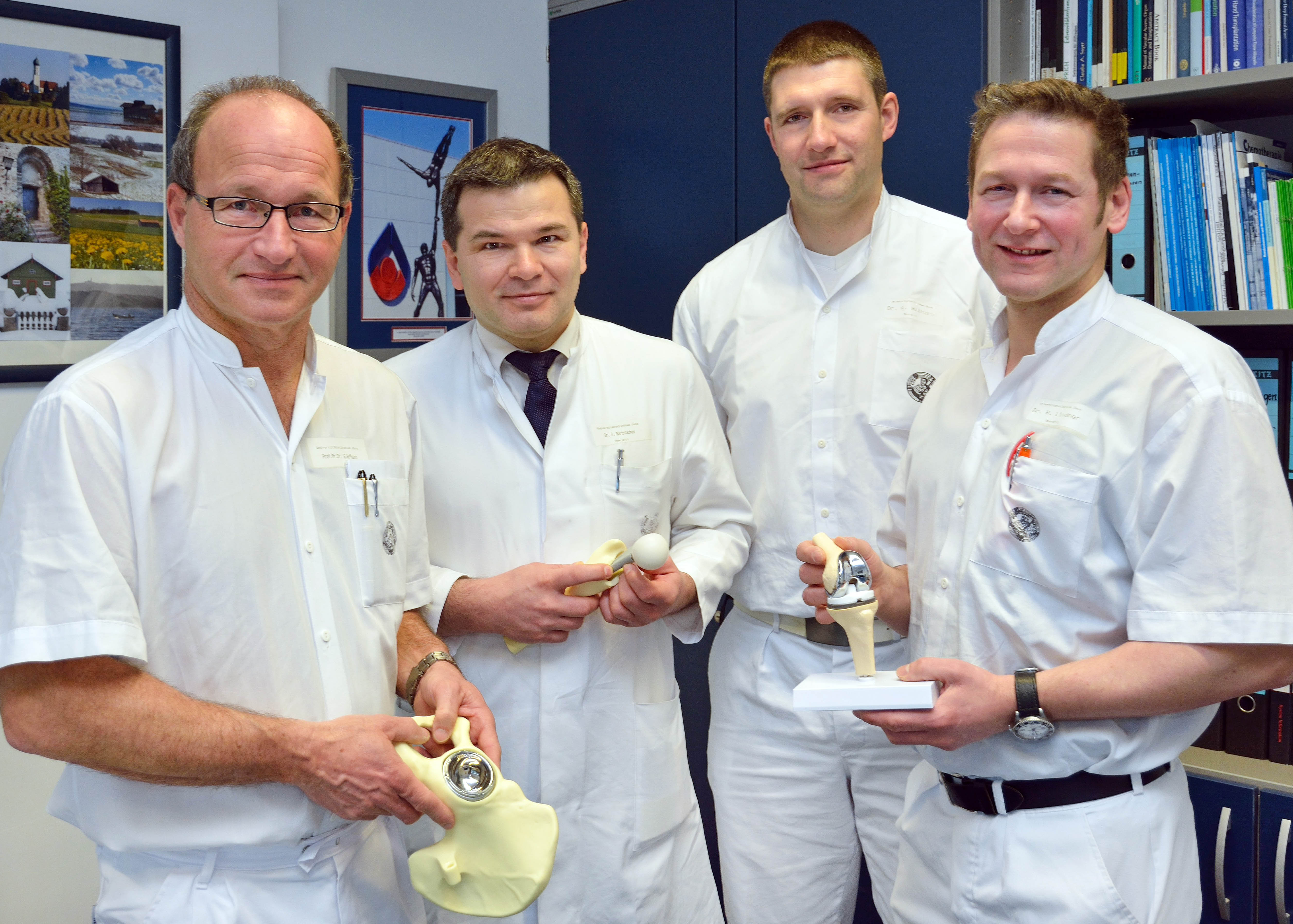 Im Jahr 2013 wurden in Thüringen mehr als 4500 Hüftgelenksendoprothesen und über 4000 Kniegelenksendoprothesen aufgrund von Arthrose implantiert. Auch an der Klinik für Unfall-, Hand- und Wiederherstellungschirurgie am UKJ versorgen die Jenaer Unfallchirurgen seit Jahren an Arthrose leidende Patienten mit Endoprothesen an allen großen Gelenken. Weitere Schwerpunkte sind neben der Frakturendoprothetik und dem beidseitigen Gelenkersatz auch Endoprothesenwechsel bei schmerzhaften, infizierten, gelockerten oder ausgebrochenen Endoprothesen. Zudem können Patienten am UKJ operiert werden, die aufgrund ihrer Grunderkrankungen in vielen Krankhäusern in Thüringen nicht mehr versorgt werden können.