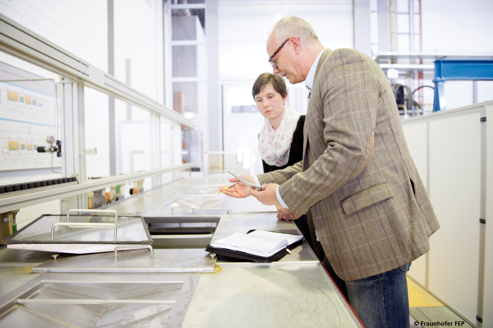 Ein typischer Beratungsauftrag in der Industrie sieht für André Weidauer, Projektleiter am Fraunhofer FEP, so aus: »Zunächst untersuchen wir die gesamte Prozesskette auf Verunreinigungspotenziale und bereits angewandte Messmethoden und Reinigungsabläufe. Gemeinsam mit dem Kunden erarbeiten wir die optimale Zusammensetzung und Kontrolle des Gesamtprozesses und diskutieren geeignete Anlagenkonzepte. Vorab testen wir die für den Kunden geeigneten Methoden direkt an den Anlagen unseres Instituts oder bei Partnern der Fraunhofer-Allianz Reinigungstechnik. Wir unterstützen die Kunden dann auch bei der Inbetriebnahme der neuen Prozesstechnik und schulen die beteiligten Mitarbeiter.«