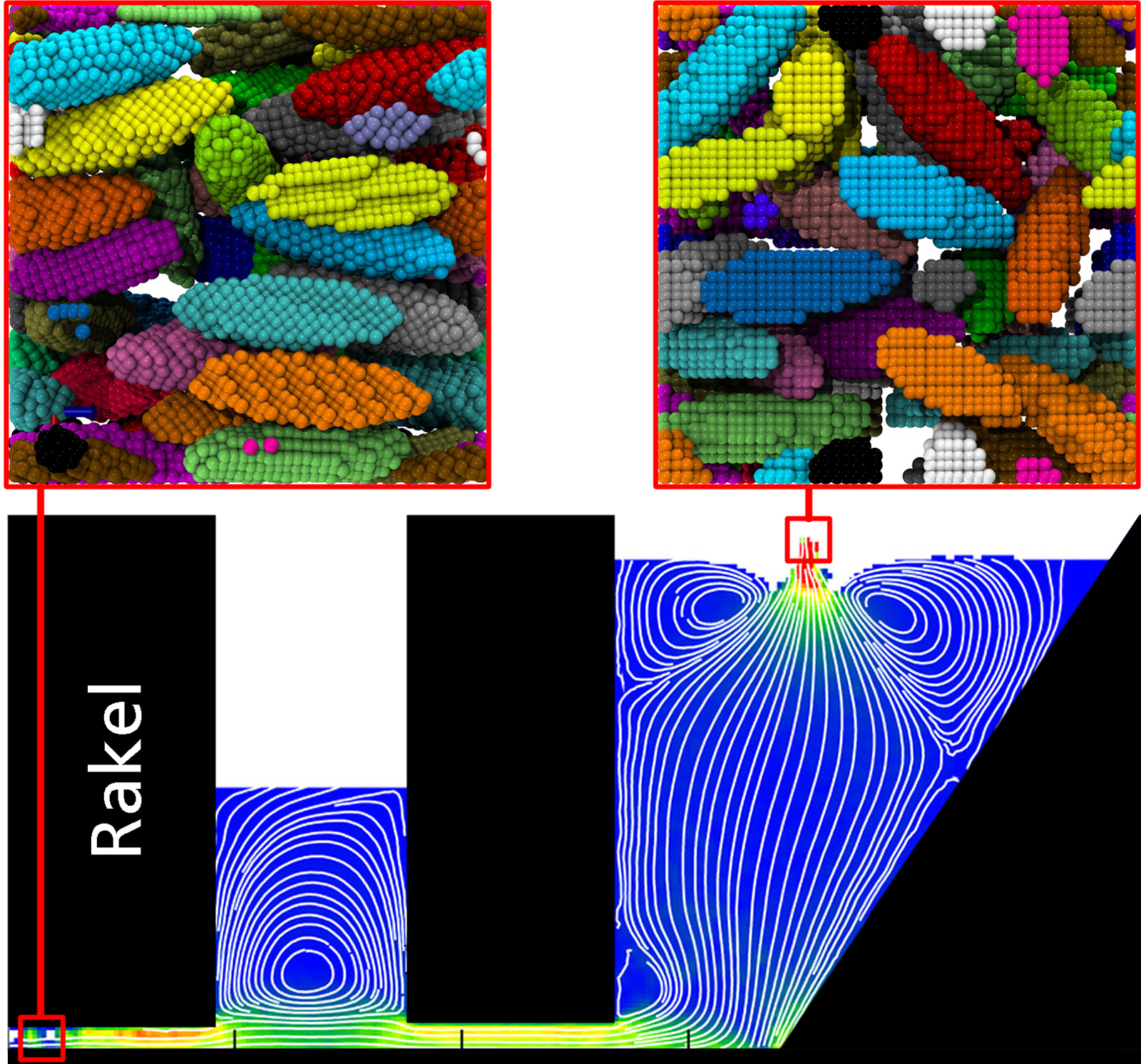 Die Forscher simulieren makroskopisch, wie der Keramikschlicker durch die Anlage strömt. Denn welche Eigenschaften die Folie später besitzt, hängt auch von der Geometrie der Anlage ab. Bleibt der Schlicker etwa lange in »toten Winkeln« des Gießkastens hängen, altert er dort. Landet er dann schließlich doch in der Folie, führt dies zu Qualitätseinbußen – und damit zu unerwünschtem Ausschuss. Die Simulation verrät den Herstellern, wie die Gießkastengeometrie die Strömung des Schlickers beeinflusst. Wo bleibt die flüssige Keramik hängen? Wie ändert sich das Strömungsbild, wenn man die Geometrie der Rakel verändert? So können Keramikhersteller vielversprechende Gießkastengeometrien zunächst virtuell testen und teure reelle Versuchs-Rakel einsparen.