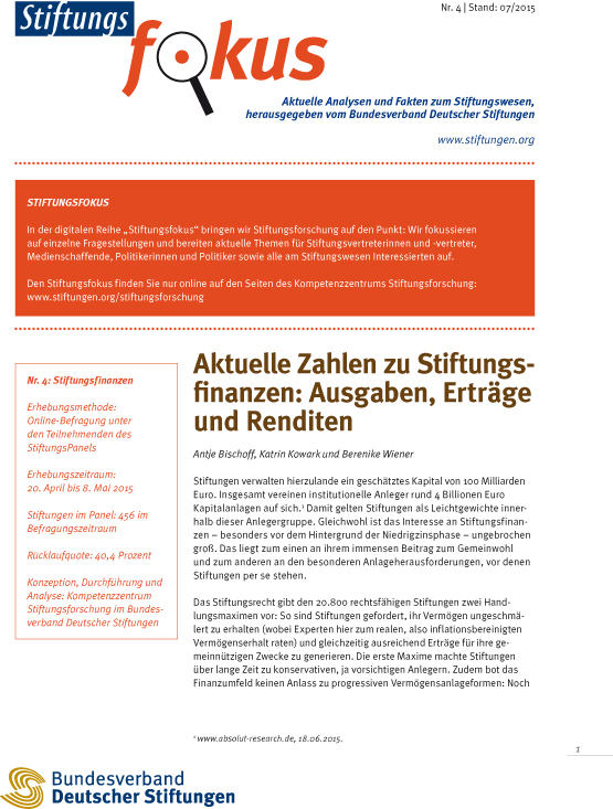 http://www.stiftungen.org/stiftungsfokus - der Stiftungsfokus "Aktuelle Zahlen zu Stiftungsfinanzen: Ausgaben, Erträge und Renditen" zum Download.