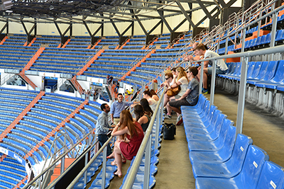 Bei einem so bekannten Verein nimmt die Kommunikation natürlich eine tragende Rolle ein: Juan Camilo Andrade, seit vier Jahren im Frist Team Communication Department, gab den Studierenden exklusive Einblicke in den Alltag der madrilenischen Kommunikationsabteilung. In den oberen Rängen der Tribüne mit eindrucksvollem Blick auf das Spielfeld erzählte Andrade von den vielfältigen Aufgaben und Herausforderungen seines Berufs. Gerade kurz vor wichtigen Spielen oder bei Transferentscheidungen ist die Kommunikationskompetenz der Presseabteilung gefragt: Sie organisieren Interviews und pflegen die Kontakte zu internationalen Medien.