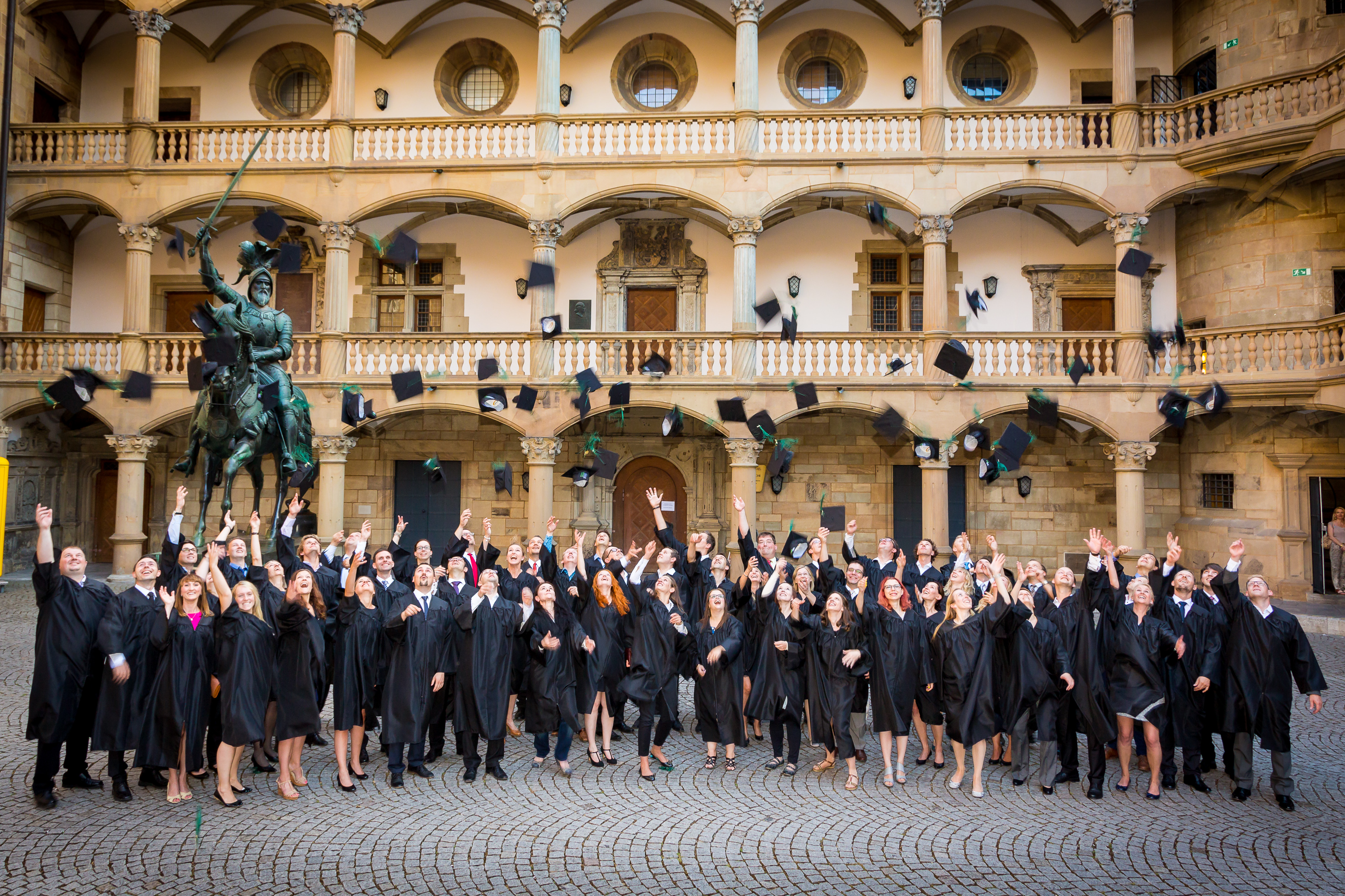 Den Höhepunkt der Feier bildete für die meisten Studenten das Werfen ihrer Barett-Hüte, mit dem sie ihrer Freude über den erfolgreichen Studienabschluss Ausdruck verliehen. Im Anschluss an die offizielle Verabschiedung standen viele der Alumni mit ihren Familien, Freunden und ehemaligen Professoren noch bis Mitternacht im Innenhof des Alten Schlosses – bevor sie teils nachhause, teils in die Stuttgarter Partynacht zogen.