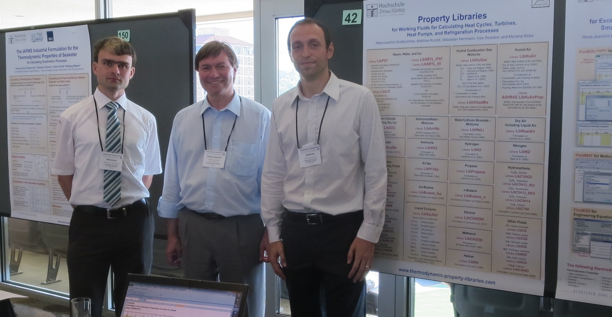 Vom Fachgebiet Technische Thermodynamik an der Fakultät Maschinenwesen nahmen Prof. Dr.-Ing. habil. Hans-Joachim Kretzschmar, Dr.-Ing. Sebastian Herrmann und Dipl.-Ing. (FH) Matthias Kunick an der international bedeutendsten Konferenz auf dem Gebiet der thermophysikalischen Eigenschaften von Gasen, Flüssigkeiten und Festkörpern teil. Diese Konferenz findet alle drei Jahre statt.