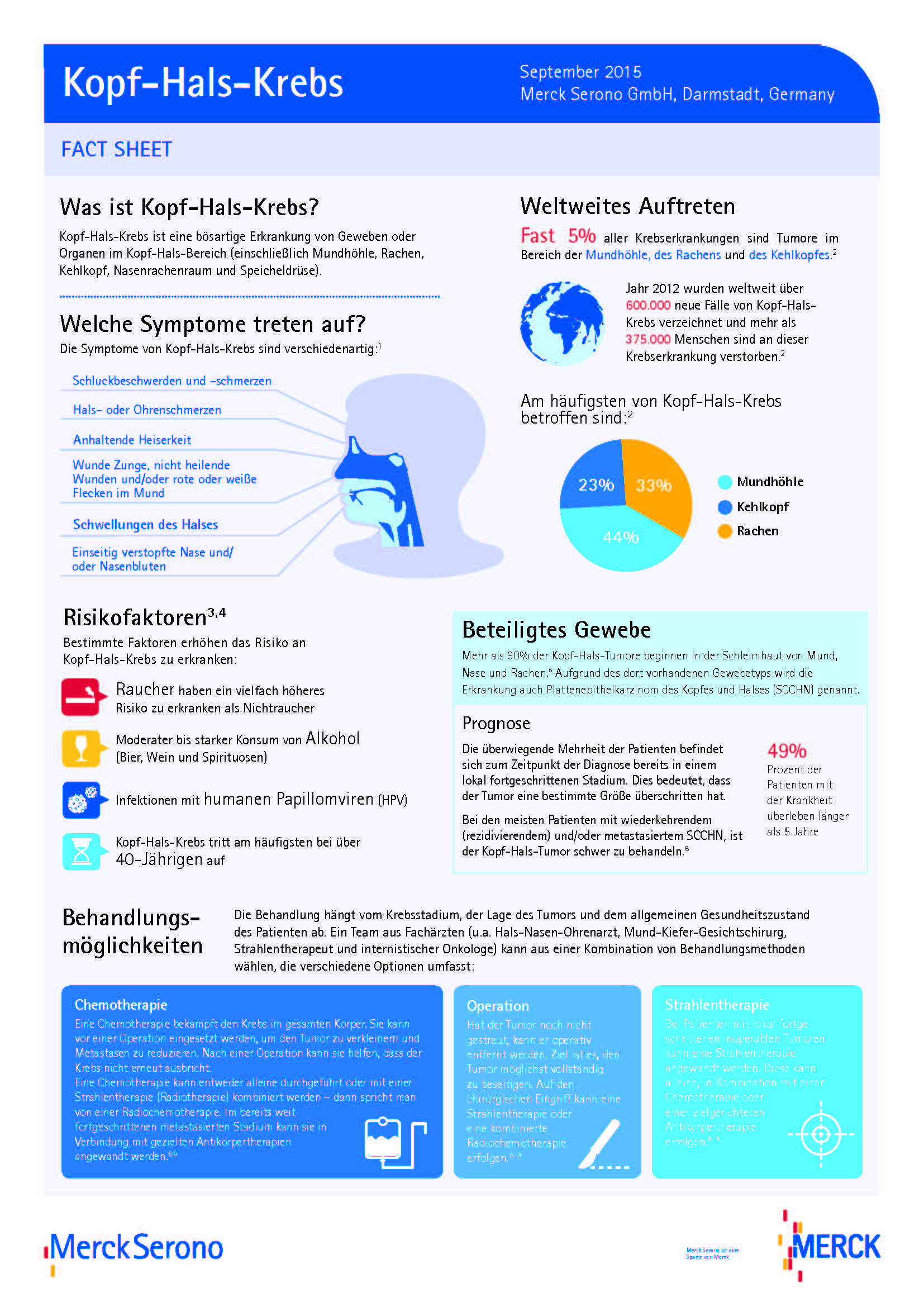 „Jedes Jahr wird in Europa bei 350.000 Menschen Kopf-Hals-Krebs diagnostiziert und über die Hälfte davon wird nach fünf Jahren nicht mehr am Leben sein. Und das, obwohl Patienten bei früher Diagnose und Behandlung eine Überlebensrate von 80-90% haben könnten,” so Professor Dr. med. René Leemans, Vorsitzender der EHNS. Daher finden am 23. September Patiententage in Kliniken statt – mit kostenlosen Screenings, Vorträgen und umfangreichen Informationsmaterialien. In Deutschland wird die Aktionswoche gemeinsam mit den Landespartnern der EHNS, Ärzten und Patientenorganisationen veranstaltet.