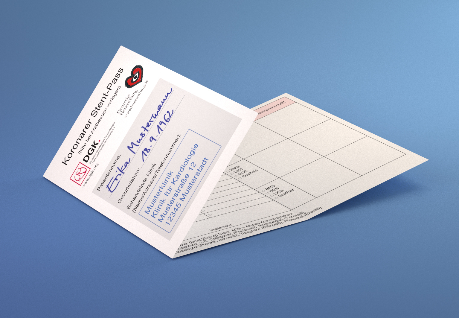 Der kostenfreie Stent-Pass kann bei der Deutschen Herzstiftung kostenfrei angefordert werden unter www.herzstiftung.de/Stent-Pass.html oder telef. unter 069 955128400.