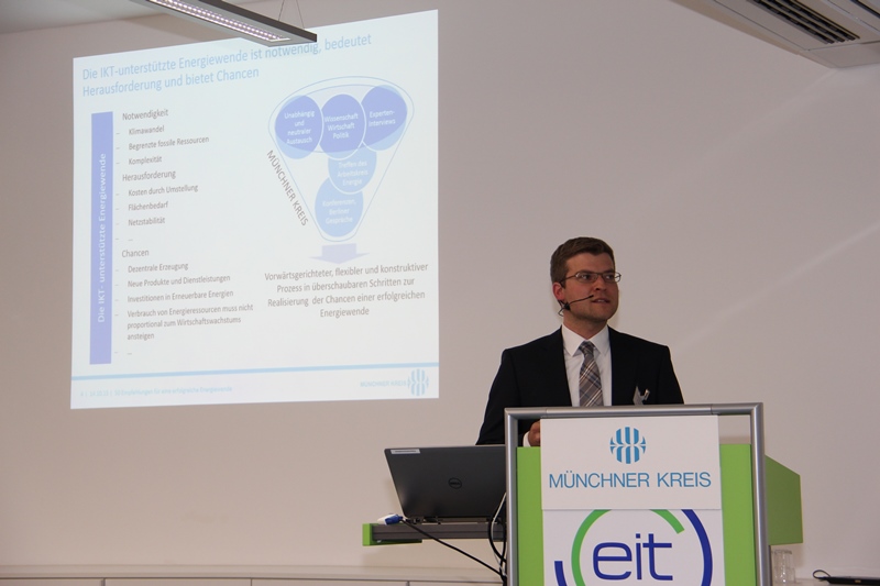 Dr. Benedikt Römer, Siemens AG und MÜNCHNER KREIS, sieht in der Energiewende eine große Chance für die deutsche Volkswirtschaft, denn neue Geschäftsmodelle und neue Lösungen schaffen Wert und Arbeitsplätze. „Durch die Förderungen von Innovationen im Bereich intelligenter Energie kann sich Deutschland als Vorreiter etablieren, die Modernisierung des Energiesystems in Europa vorantreiben und weltweit neue Produkte und Lösungen vermarkten“, so Römer. Wichtig ist in der Umsetzung ein zielgerichteter Einsatz von Technologie- und Prozessinnovationen. Best Practice Beispiele und gut geplante Transformationsprojekte können hierbei wichtige Unterstützung leisten, um aus den vielfältigen Informations- und Kommunikationstechnologien die richtigen auszuwählen und möglichst wertschaffend zu nutzen.