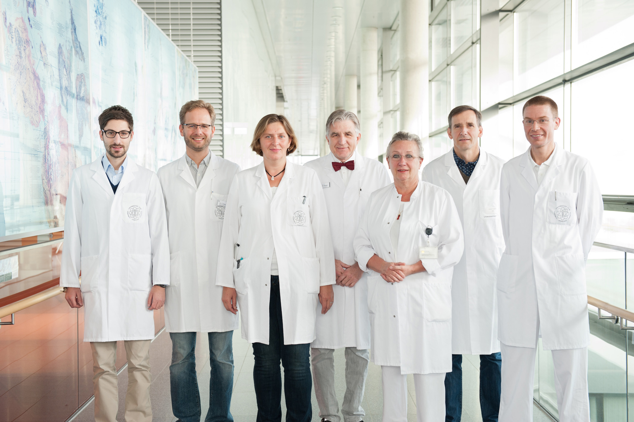 Gruppe_Echinokokkose (Foto: Eberhardt/Uni Ulm): Spezialisten für die alveoläre Echinokokkose (v.l.): Julian Schmidberger, Dr. Tilmann Gräter, Dr. Beate Grüner, Prof. Wolfgang Kratzer, Prof. Doris Henne-Bruns, Prof. Thomas F.