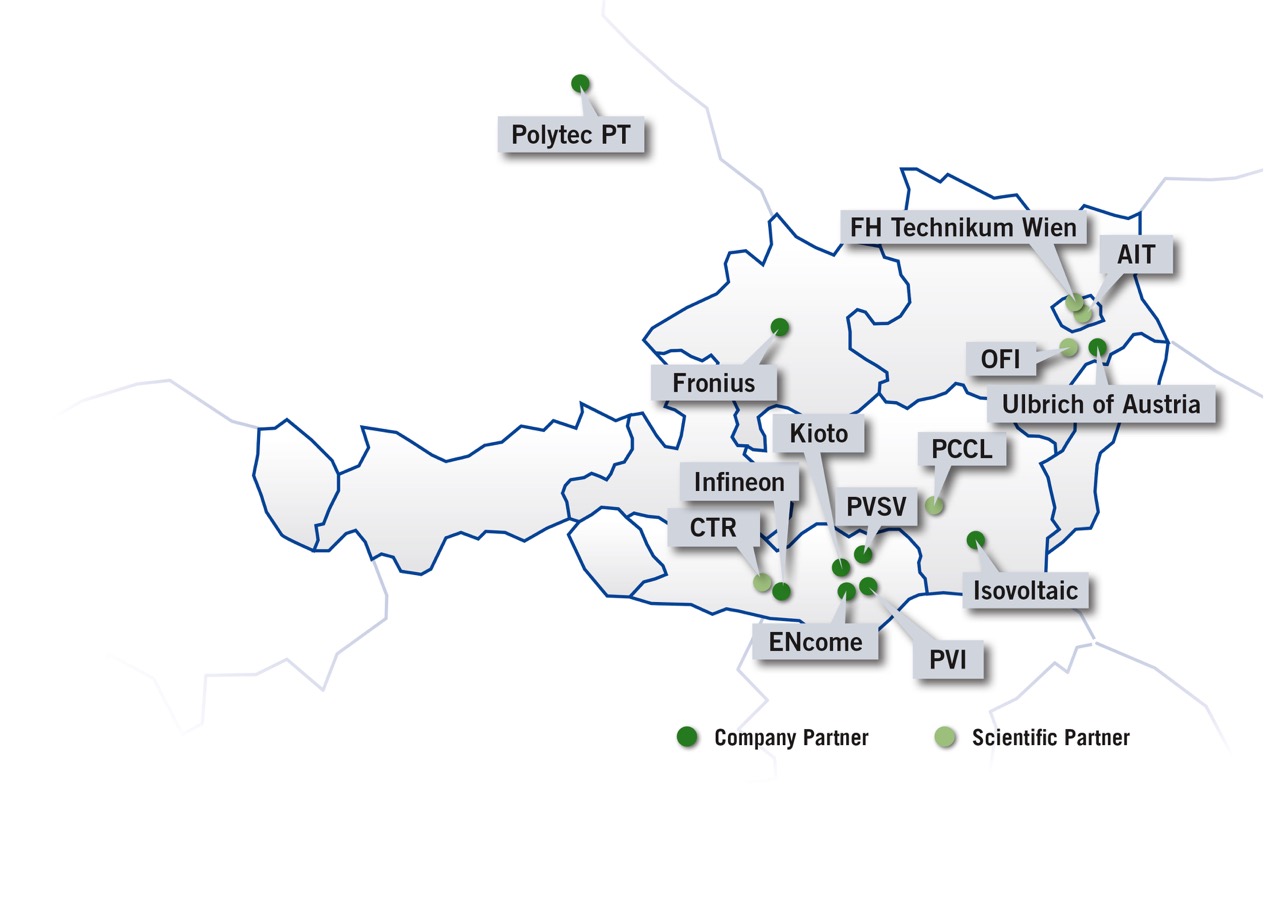 INDUSTRIAL PARTNERS: ENcome Energy Performance, Fronius International, Infineon Technologies Austria, Isovoltaic, KIOTO Photovoltaics, Polytec PT, PVI, PVSV, Ulbrich of Austria