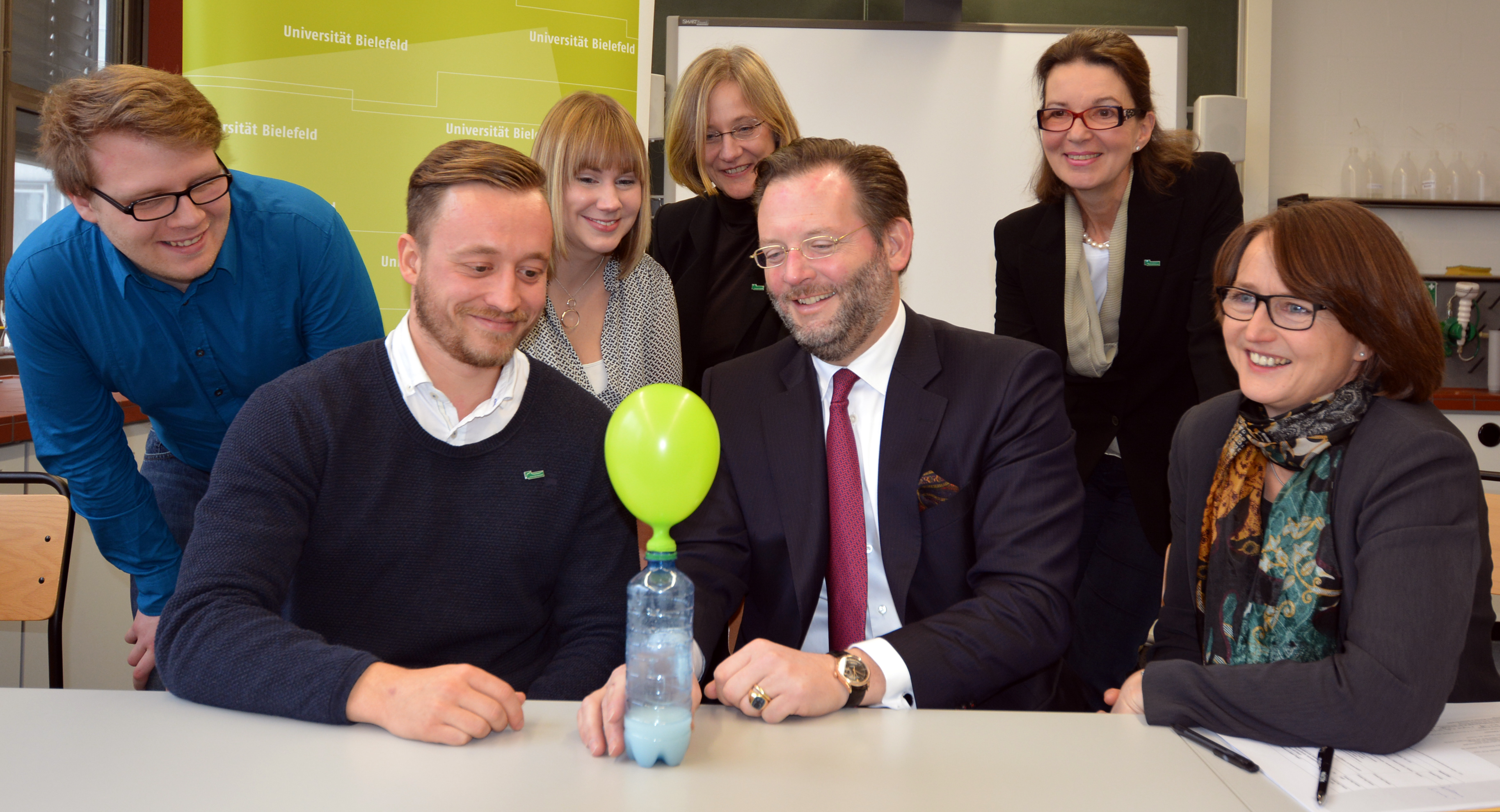 Studierende der Chemie-Professorin Gisela Lück besuchen seit Oktober 2015 einmal pro Woche insgesamt 14 Schulen und Jugendeinrichtungen in der Region Bielefeld, um mit 7- bis 18-jährigen Geflüchteten zu experimentieren. Die Bielefelder Doris-Wolff-Stiftung fördert das Projekt „Welcome Science“ mit 100.000 Euro. Die Experimente sollen den Kindern und Jugendlichen praktische Fähigkeiten vermitteln und ihr Interesse für Naturwissenschaften wecken.