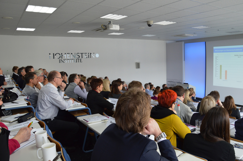 BÖNNIGHEIM (cka) Am 20. Januar 2016 feierte das „Forum Funktionalisierung“ Premiere an den Hohenstein Instituten. Dr. Jan Beringer, Hohenstein Institute, und Dr. Thomas Stegmaier, ITV Denkendorf begrüßten rund 80 Teilnehmer bei der Veranstaltung. Zahlreiche Referenten aus der Industrie und Forschung boten den Teilnehmern einen Einblick in die Welt der funktionalisierten Textilien sowie Raum für einen Erfahrungsaustausch über Forschung, neue Materialien und Technologien innerhalb der Branche.