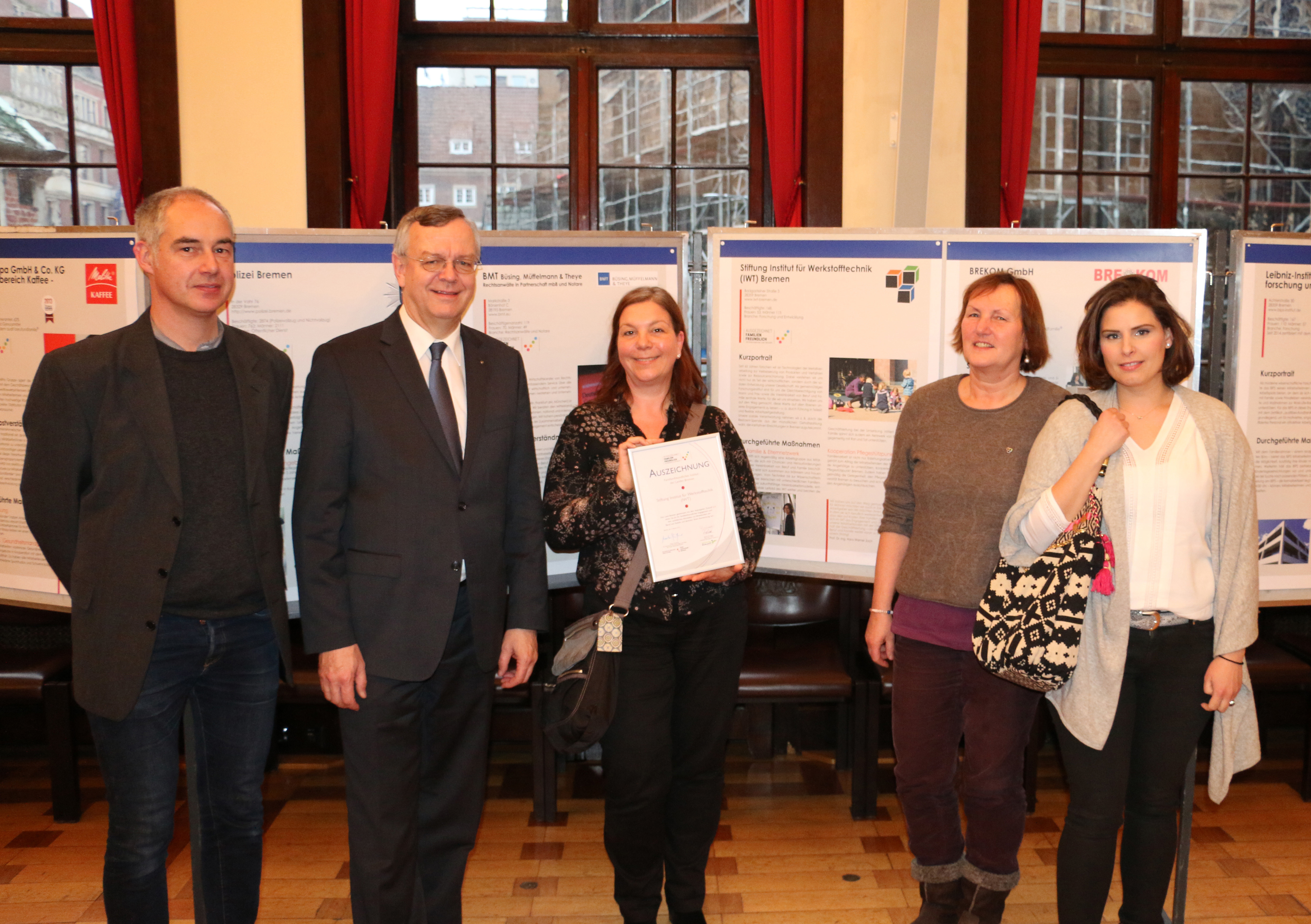 Bremen. Gute Mitarbeiterinnen und Mitarbeiter finden und halten, das ist in der Wissenschaft genauso wichtig wie in der Industrie. Ein wichtiger Faktor, der einen Arbeitgeber heute attraktiv für Mitarbeitende macht, ist die Unterstützung bei der Vereinbarkeit von Beruf und Familie. Diese Unterstützung intensiviert die Geschäftsführung der Stiftung Institut für Werkstofftechnik (IWT) Bremen seit zwei Jahren stetig in Zusammenarbeit mit den Mitarbeitenden. Für dieses Engagement erhielt das IWT Bremen nun das Siegel „AUSGEZEICHNET FAMILIENFREUNDLICH Unternehmen im Land Bremen“, das durch den Impulsgeber Zukunft e. V. im Rahmen einer Festveranstaltung im Bremer Rathaus verliehen wurde.