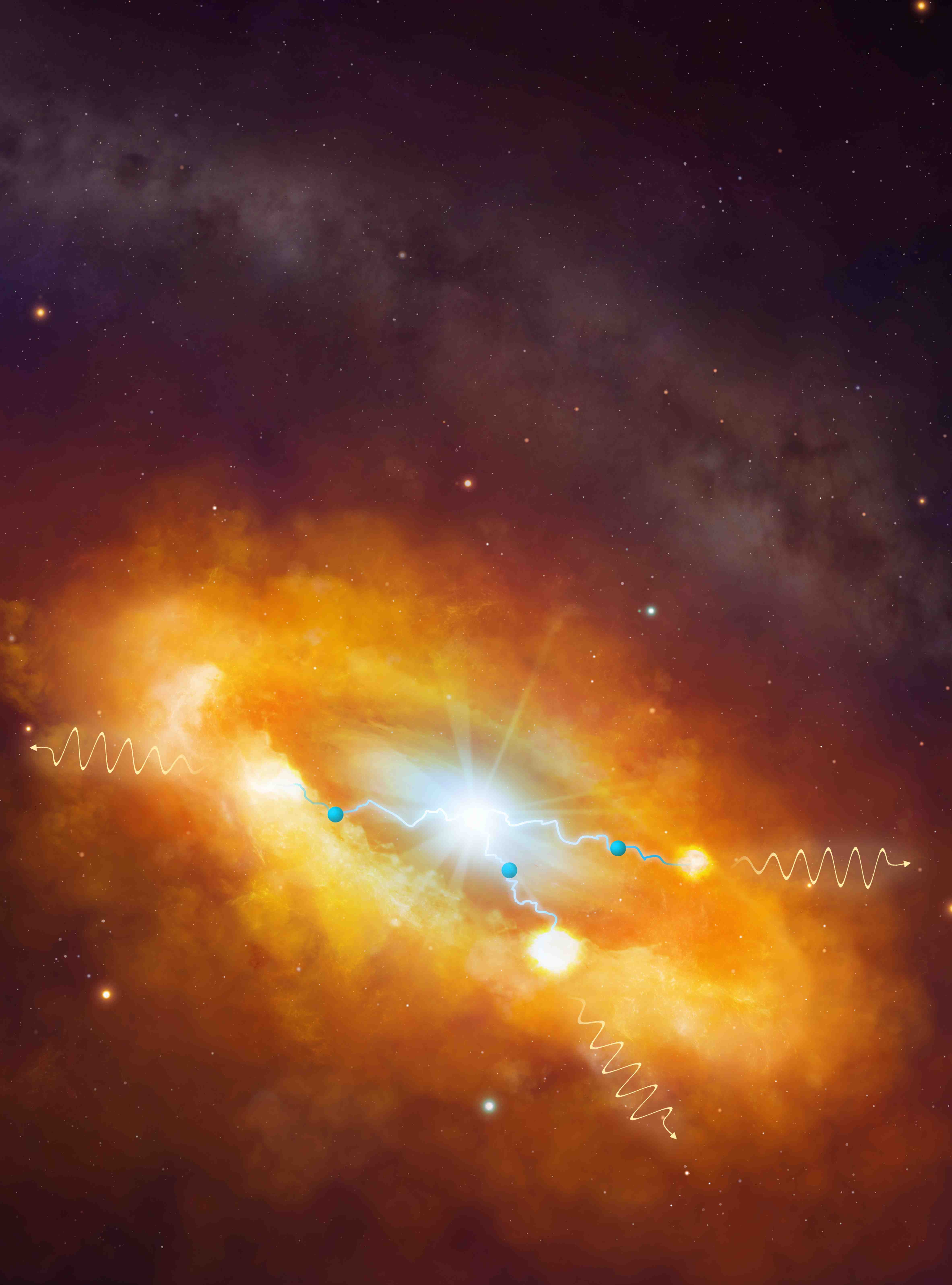 Detaillierte Beobachtungen des Zentrums der Milchstraße, die mit den H.E.S.S.-Teleskopen während der letzten 10 Jahre durchgeführt wurden, liefern jetzt erste Antworten. Schon während der ersten Beobachtungsjahre hatte H.E.S.S. eine starke kompakte Quelle sowie ein ausgedehntes Band diffuser höchstenergetischer Gammastrahlung im Galaktischen Zentrum nachgewiesen. Die diffuse Strahlung erstreckt sich über eine Region von etwa 500 Lichtjahren Durchmesser, die dichte Molekülwolken beinhaltet. Die Gammastrahlung entsteht, wenn kosmische Strahlung mit dem Material der Wolken in Wechselwirkung tritt. Der Nachweis dieser diffusen Strahlung mit H.E.S.S. ist ein deutlicher Hinweis darauf, dass sich eine Quelle kosmischer Strahlung in dieser Region befinden muss; die Quelle selbst konnten die Forscher seinerzeit jedoch nicht eindeutig identifizieren.