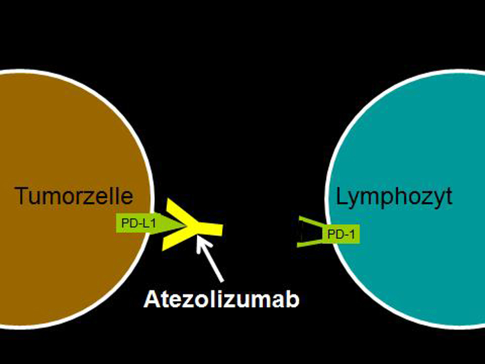 (umg) Krebszellen können das Immunsystem gezielt in die Irre führen. Normalerweise attackiert das Immunsystem neu entstandene bösartige Zellen und verhindert so, dass Menschen an Krebs erkranken. Wenn es den Krebszellen gelingt, bestimmte Signale (PD-L1) zu zeigen, wird das Immunsystem inaktiviert und der Krebs kann ungehindert wachsen. In den letzten Jahren wurden Therapieansätze entwickelt, die das Immunsystem reaktivieren können, so dass der eigene Körper den Krebs wieder angreift. In einer internationalen klinischen Studie haben Forscher jetzt einen neuen Antikörper geprüft. Im Gegensatz zu einem bereits für die Behandlung von Lungenkrebs zugelassenen Antikörper, der den gleichen Signalweg auf der Oberfläche der beteiligten Immunzellen (PD-1) blockiert, wurde jetzt erstmals ein Antikörper getestet, der direkt das Tumorsignal (PD-L1) abschirmt.