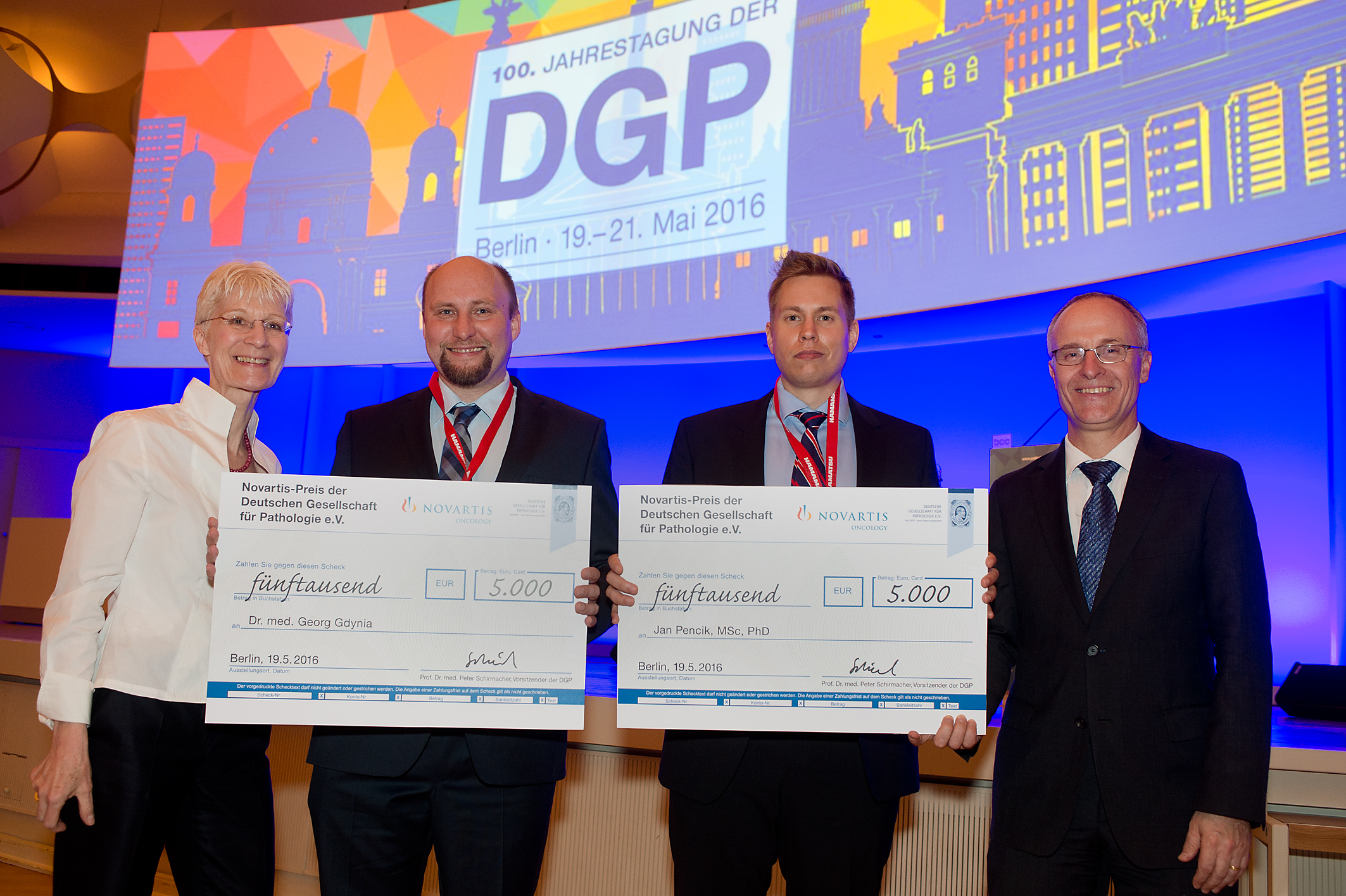 Dr. Georg Gdynia vom Pathologischen Institut am Universitätsklinikum Heidelberg entdeckte mit seinem Team in Immunzellen ein Protein, das sich in besonderer Weise als neuer Wirkstoff zur Krebsbekämpfung eignen könnte. Dafür ist er von der Deutschen Gesellschaft für Pathologie (DGP) bei ihrer 100. Jahrestagung in Berlin im Mai 2016 mit dem Novartis-Preis ausgezeichnet worden. Gdynia teilt sich den von der Firma Novartis Oncology gestifteten und mit 10.000 Euro dotierten Preis zu gleichen Teilen mit dem Biochemiker Dr. Jan Pencik von der Medizinischen Universität Wien.