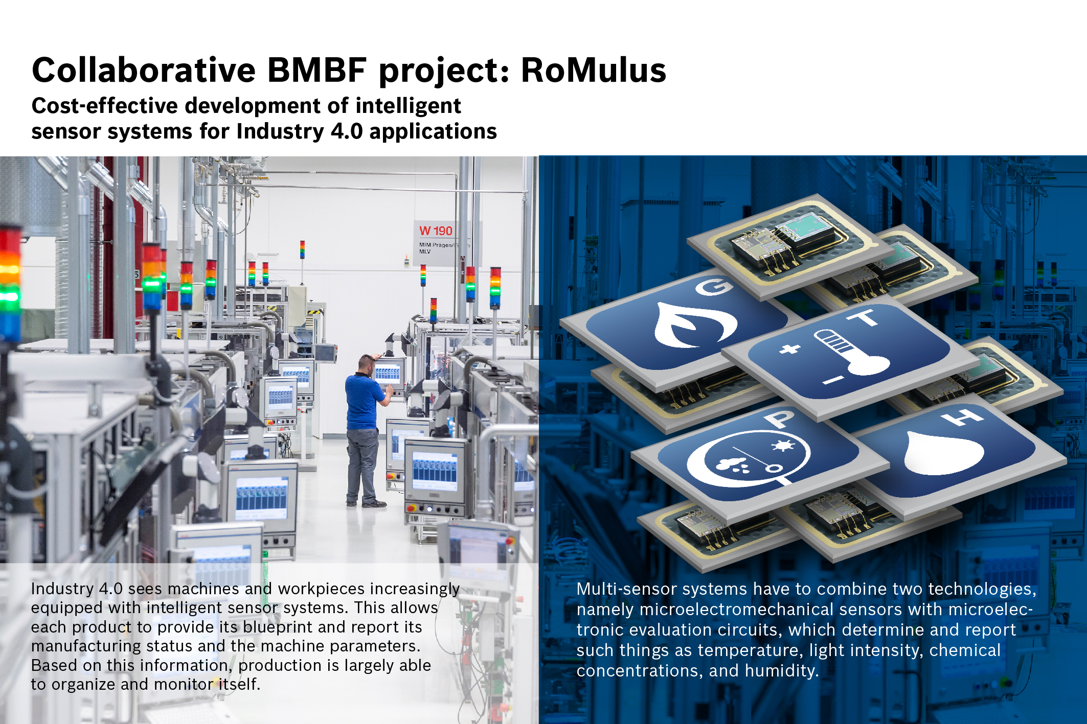“RoMulus makes it possible to systematically design and cost-effectively manufacture robust, energy-efficient multi-sensor systems, even in small quantities. As a result, German sensor technology manufacturers are leading the field in terms of creating an important technological basis for Industry 4.0 applications,” explains Dr. Reinhard Neul from Robert Bosch GmbH.