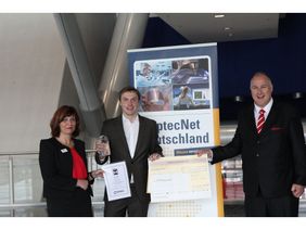 Sieger wurde Dr. Jürgen Schmied von der Gattaquant GmbH, die auf Basis von DNA Testproben für die Superauflösungsmikroskopie fertigt. Daniela Reuter (Vorstand des OptecNet Deutschlands e.V.) gratulierte ihm und überreichte gemeinsam mit dem Juryvorsitzenden Dr. Thomas Kessler den Siegerpokal, den Scheck über 10.000 € und den Gutschein von Schall-Messen für einen Messestand auf der Optatec 2018. Zudem wird der Sieger in der „Photonik“, der auflagenstärksten Fachzeitschrift für die Optischen Technologien porträtiert.