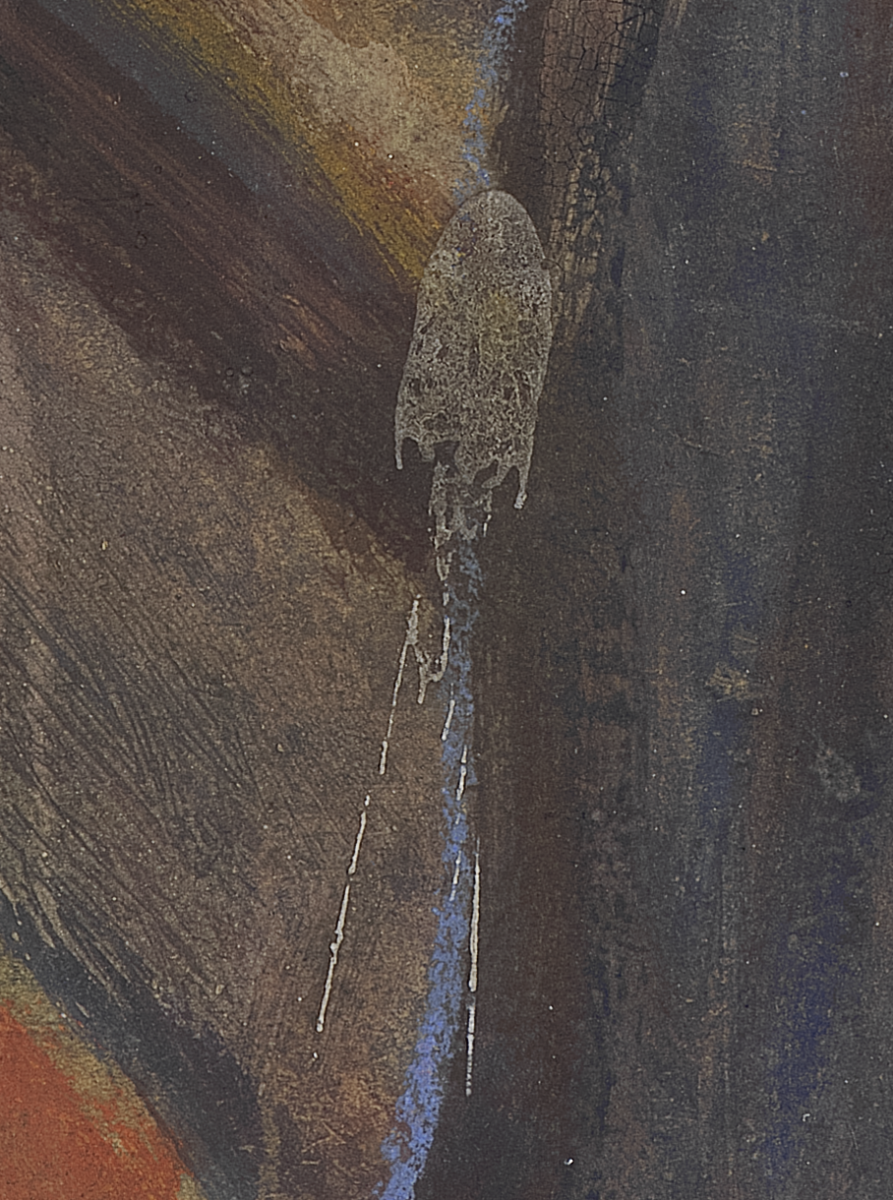 Bei der Analyse der DESY-Messdaten von Munchs "Schrei" erlebte der Antwerpener Doktorand Frederik Vanmeert eine Überraschung: "Ich habe sofort das Streumuster von Wachskristallen erkannt, weil ich diesem Material bereits mehrere Male bei der Untersuchung von Gemälden begegnet bin." Instabile Gemälde wurden in der Vergangenheit oft mit Bienenwachs oder ähnlichen Materialien imprägniert, um abblätternde Farbe zu sichern oder eine neue Leinwand auf die Rückseite einer verschlissenen aufzutragen. Im Fall des "Schreis" ist die wahrscheinlichste Erklärung, dass es sich bei den weißen Flecken um Wachsspritzer handelt, die aus Versehen von einer Kerze in Munchs Atelier auf das Bild getropft sind.