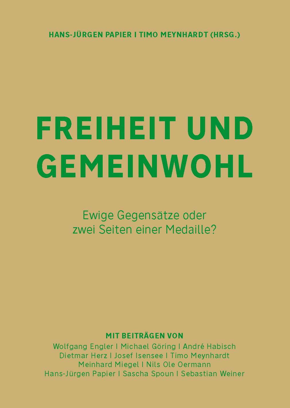 „Freiheit und Gemeinwohl – Ewige Gegensätze oder zwei Seiten einer Medaille“ heißt der jüngste von Prof. em. Dr. Hans-Jürgen Papier, langjähriger Präsident des Bundesverfassungsgerichtes, und Prof. Dr. Timo Meynhardt, Inhaber des Dr. Arend Oetker Lehrstuhls für Wirtschaftspsychologie und Führung an der HHL Leipzig Graduate School of Management, herausgegebene Band. Wie können die zwei Begriffe in die heutige Zeit hinein übersetzt werden? Welche Konsequenzen ergeben sich daraus für unser eigenes Handeln als Unternehmer, Jurist, Wissenschaftler oder auch in der Partnerschaft? Insgesamt sind in der Publikation zehn Texte renommierter Wissenschaftler aus verschiedenen Disziplinen enthalten.