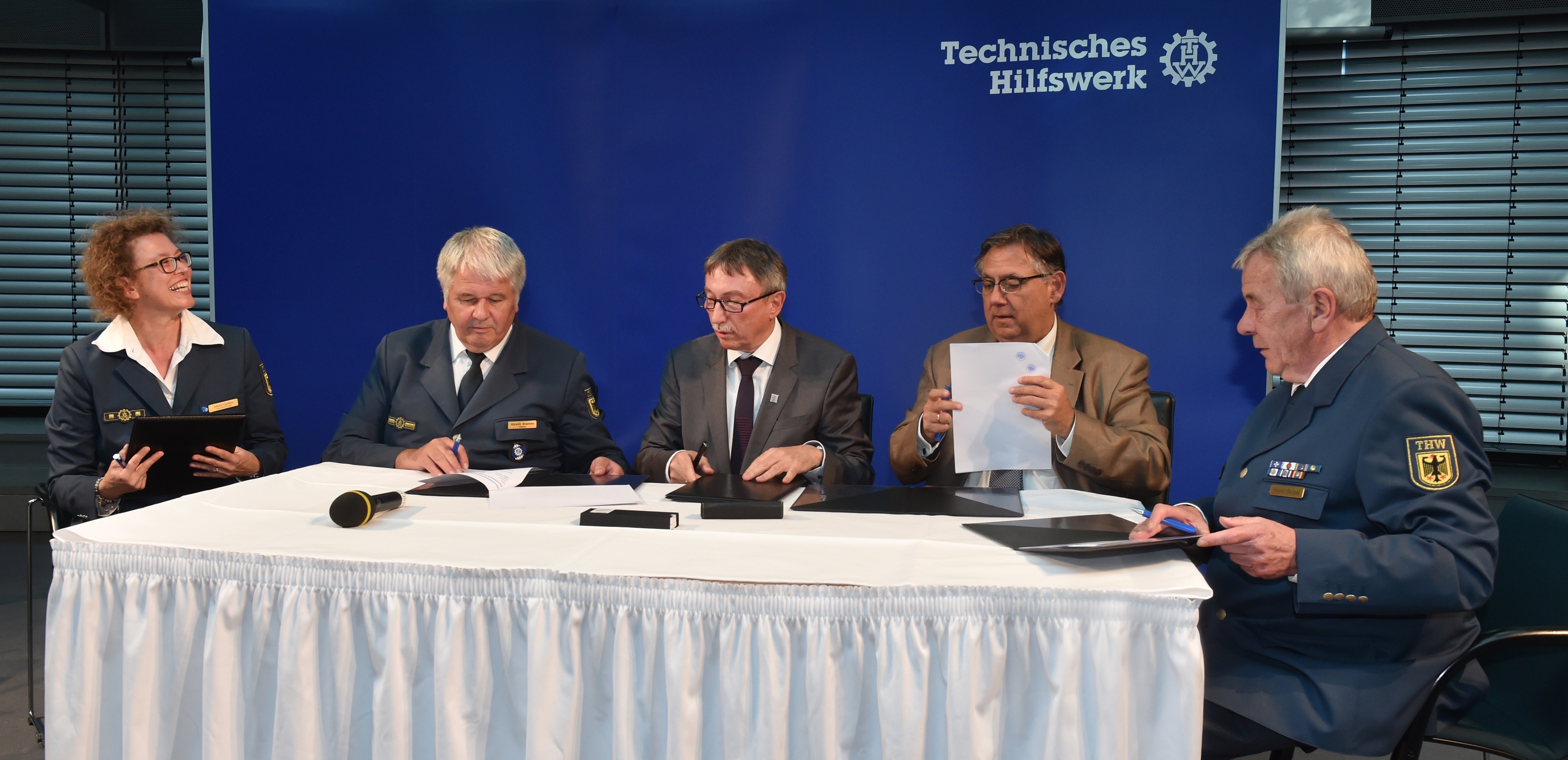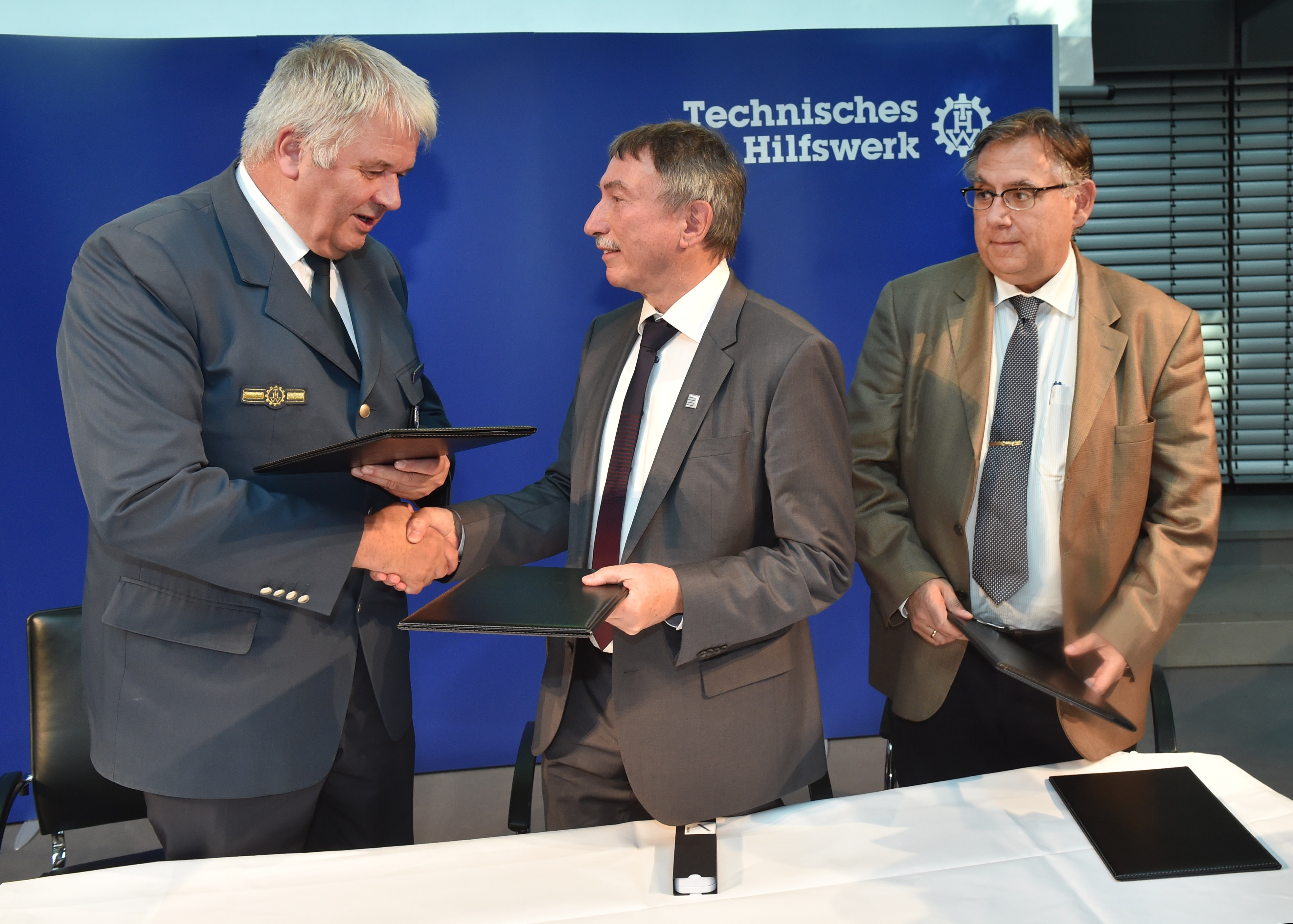 BU: Kooperationsunterzeichnung gestern im Allianzforum in Berlin beim THW-Kongress.