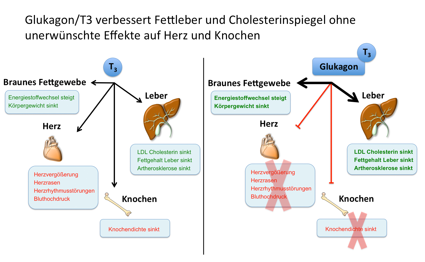 Durch die Bindung des Schilddrüsenhormons T3 an Glukagon gelangt T3 nur in Zellen, welche den Glukagonrezeptor haben. „Der Rezeptor für Glukagon wird überwiegend in der Leber ausgebildet, fehlt aber in Herz und Knochen. Diese Beobachtung haben wir für unsere ferngesteuerte Medikamentenauslieferung benützt“, berichtet Dr. Christoffer Clemmensen, Arbeitsgruppenleiter am Helmholtz Diabetes Center und einer der beiden Erstautoren der Studie.