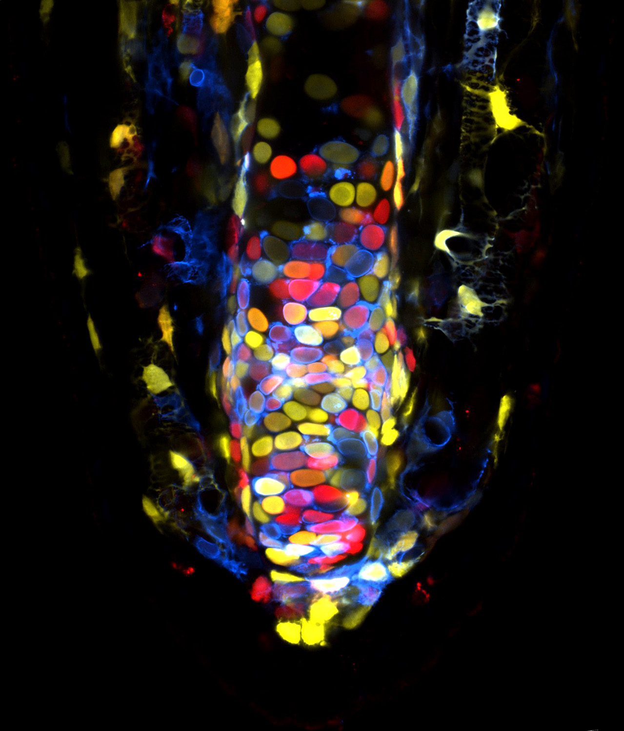 Dresden. Der Axolotl ist ein Champion der Regeneration. Er kann sein Gliedmaßenskelett vollständig regenerieren und ist in der Lage, Wunden ohne eine Bildung von Narben heilen zu lassen. Die Entschlüsselung dieser Prozesse verspricht, die Knochenregneration nach Frakturen zu verbessern, als auch die Narbenbildung während der Wundheilung zu reduzieren. Wird eine Gliedmaße des Axolotls amputiert, wandern Zellen zum Ort der Verletzung und bilden dort eine Ansammlung von Zellen, das sogenannte Blastem. Das Blastem baut dann die fehlenden Bereiche der Gliedmaße wieder auf. Eine zentrale Frage besteht dabei „Wo genau kommen die Zellen für das Blastem her?“ Um diese Frage zu beantworten, nutzen Currie et. al. eine mehrfarbige Label-Technik und die Methode des Life-Imaging, um die Regeneration in der Fingerspitze des Axolotls zu untersuchen. Dabei fanden sie heraus, dass die Zellen, welche den Knochen und die Zellen unter der Hautoberfläche umgeben, zur Wundumgebung wandern, um das fehlende Knochengerüst der Fingerspitze aufzubauen. Schließlich identifizierte das Team auch den Wachstumsfaktor PDGF-BB (Platelet-derived growth factor BB), der eine Rolle bei der Aktivierung und Migration der Zellen zur Wunde spielt und daher essentiell für die Bildung des Blastems ist.
