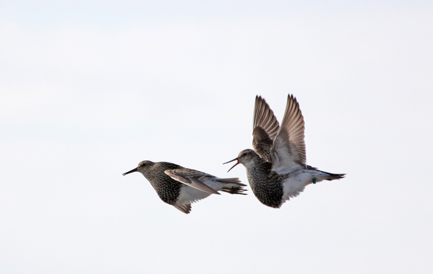 Aufwändige Balzrituale, viele erschöpfende Kämpfe mit konkurrierenden Männchen, kaum Schlaf und nur mit etwas Glück auch eine Kopulation – sind die Strapazen für die meisten Männchen also umsonst? Das interessierte den Verhaltensbiologen Bart Kempenaers, der Graubruststrandläufer schon seit über 13 Jahren erforscht. Er sah die Männchen im Untersuchungsgebiet in Barrow im südlichen Alaska ankommen und nach meist kurzer Zeit auch wieder gehen und fand heraus, dass die Verweildauer der Männchen stark davon abhängig ist, wie viele fruchtbare Weibchen vor Ort sind. Männchen, die länger blieben, hatten auch mehr Nachwuchs. Um zu untersuchen, ob die anderen aufgegeben hatten und wohin sie flogen, haben Bart Kempenaers und Mihai Valcu, ein Wissenschaftler aus seiner Abteilung, insgesamt 120 männliche Graubruststrandläufer mit kleinen mobilen Satellitensendern ausgestattet, die sich nach einiger Zeit wieder von selbst von den Tieren lösten.