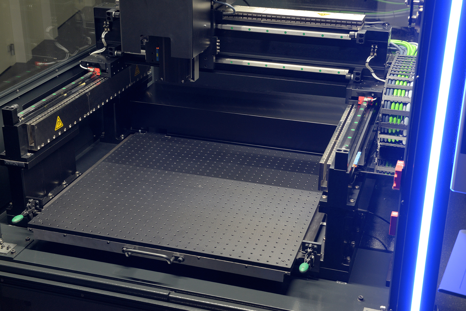 The new equipment, developed by the Fraunhofer IPT, operates with the highest level of precision and is suitable for a diverse range of optics assembly tasks – not only for active alignment of optical components, but also for inspecting or arranging micro-components. The alignment unit in the system has six degrees of freedom at its disposal and is used in conjunction with a portal system. This provides a working space of up to 500 x 500 mm² for optics assembly.