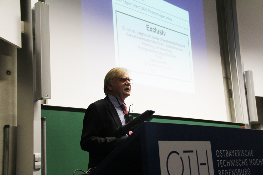 Wie es gelingen kann, Asperger-Autisten auf dem ersten Arbeitsmarkt zu integrieren und welchen „betriebswirtschaftlichen Mehrwert“, wie es Müller-Remus ausdrückte, das auch für Unternehmen mit sich bringen kann, das war das spannende Thema der Veranstaltung an der OTH Regensburg. Neben Müller-Remus referierten Prof. Dr. Matthias Dalferth, Autismus-Experte der OTH Regensburg, und Walter Krug, Gesamtleiter des Berufsbildungswerks St. Franziskus in Abensberg. Ziel sei es, so Eduard B. Wagner, Vorsitzender des Vereins der Freunde der OTH Regensburg, eine neue Sichtweise auf Menschen mit Behinderung am Beispiel Autismus zu gewinnen. Mehr als 100 Gäste kamen dazu an die OTH Regensburg.
