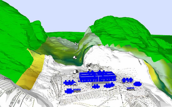 After the acoustics team has calculated how high the noise level inside a structure will be, they simulate sound propagation outside.“A tree there, a bush here, a path, a house, a street, a bridge — in a simulation, every detail of a facility’s future surroundings is reproduced,” says Holger Ennes to describe the 3D image on his display. “We also take into account variables such as an area’s wind features, air absorption, soil absorption, temperatures, and obstacles to sound transmission.”