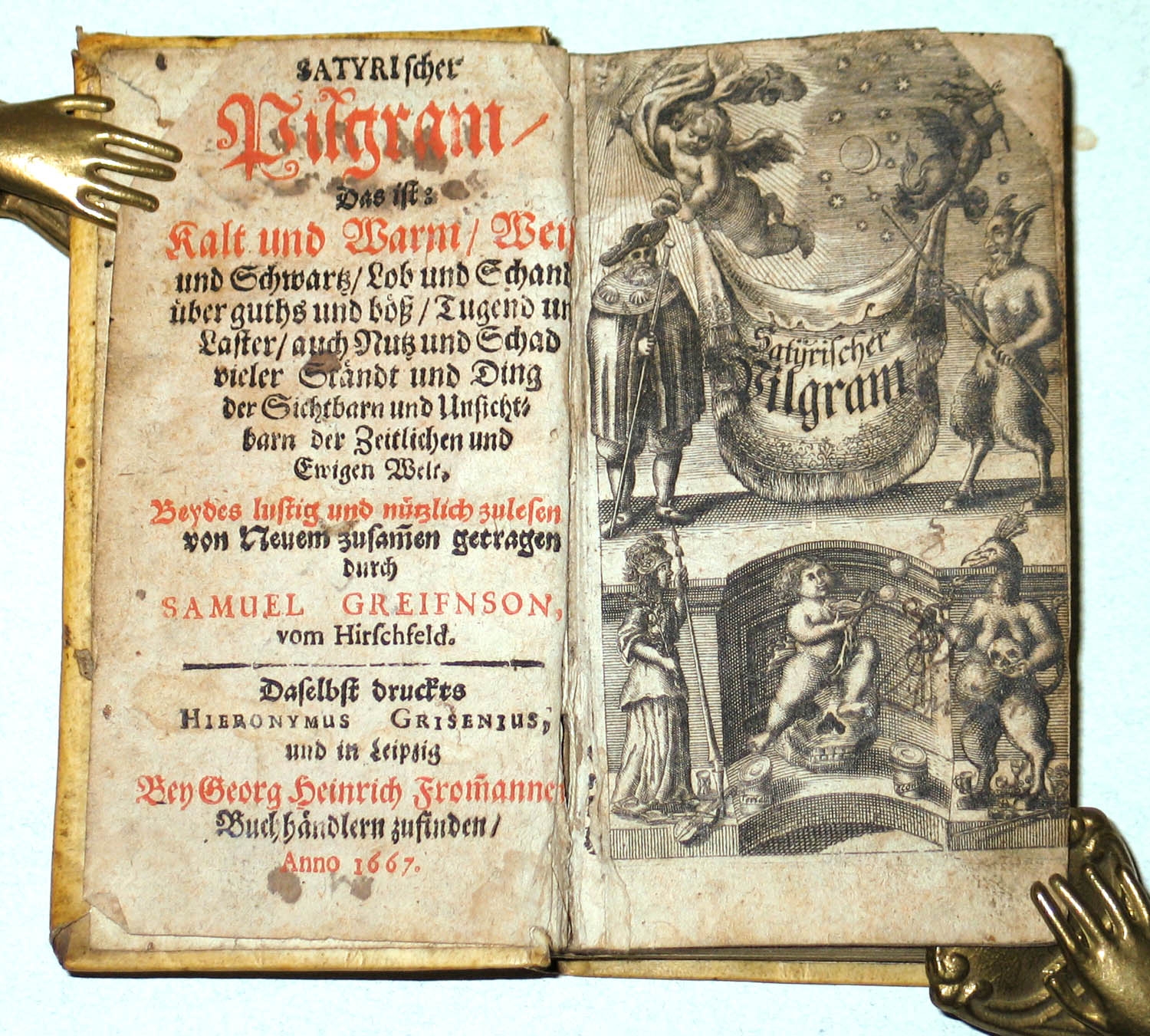 Die Herzog August Bibliothek konnte kürzlich aus dem antiquarischen Handel eine besondere Rarität der deutschen Barockliteratur erwerben. Es handelt sich um die komplette Erstausgabe des Erstlingswerks von Hans Jakob Christoffel von Grimmelshausen (1622–1676), nur zwei weitere komplette Exemplare sind bekannt. Der „Satyrische Pilgram“ stellt ein hervorragendes Dokument zum literarischen Werden des berühmten Barockautors dar, als welcher Grimmelshausen vor allem aufgrund seines Hauptwerks, des „Abenteuerlichen Simplicissimus Teutsch“ heute gilt.