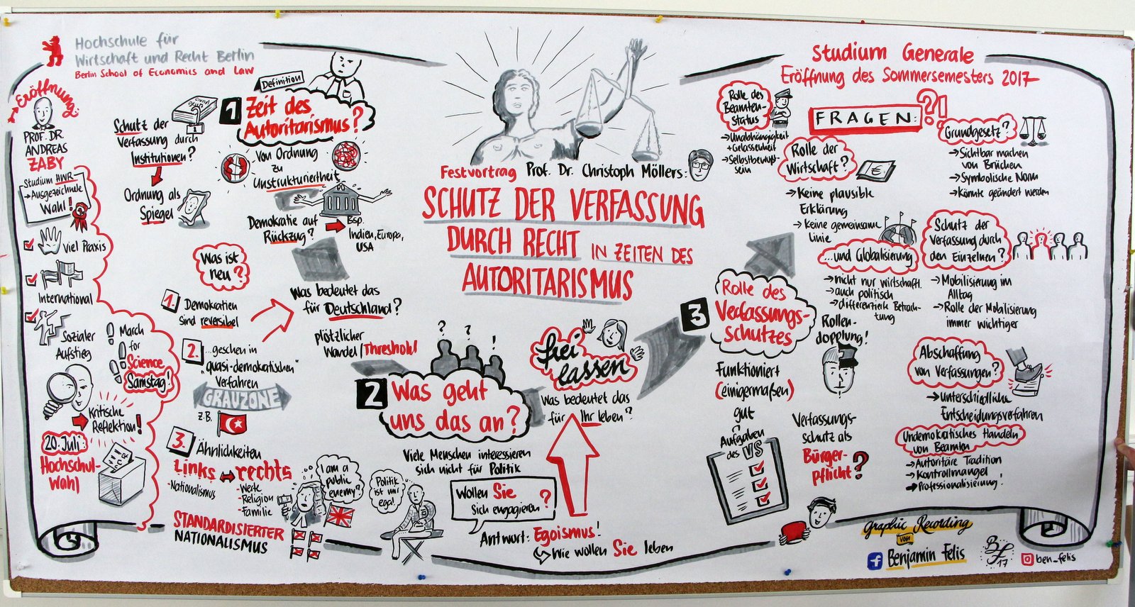 „Den Schutz der Verfassung kann man auch in einer funktionierenden Demokratie nur begrenzt allein den Institutionen überlassen“, konstatiert der angesehene Staatsrechtler Prof. Dr. Christoph Möllers in seinem Vortrag zur feierlichen Semestereröffnung an der Hochschule für Wirtschaft und Recht (HWR) Berlin Mitte April 2017.