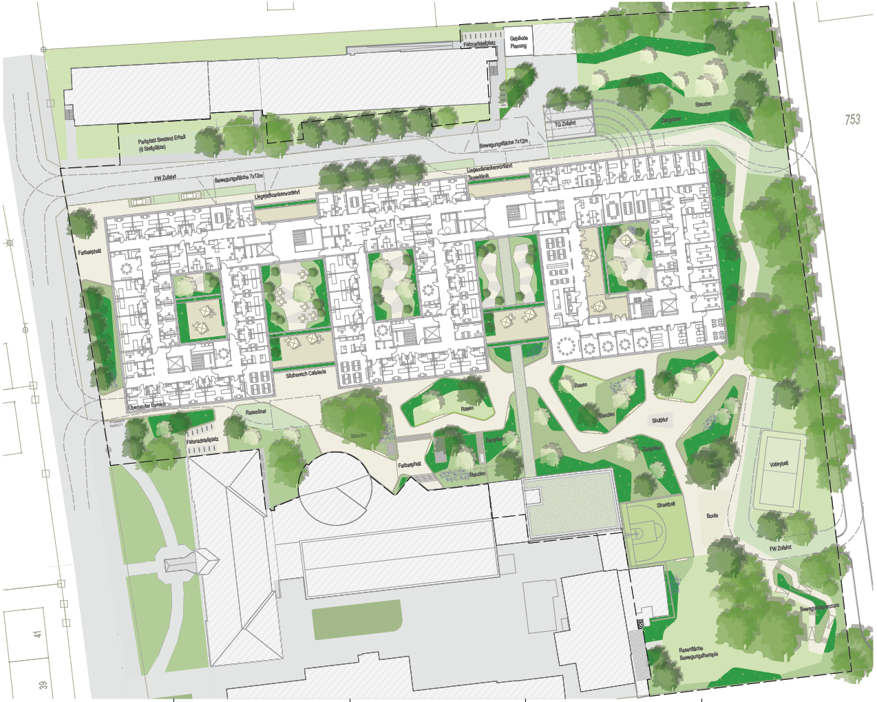 Die Neubaupläne für die Klinik des Max-Planck-Instituts für Psychiatrie in München werden immer konkreter: Die ortsansässige Felix + Jonas Architekten GmbH, die über eine breite Erfahrung bei der Realisierung von Bauvorhaben im Gesundheitsbereich verfügt, hat jetzt eine erste Visualisierung vorgelegt. Der circa 11.000 Quadratmeter große Neubau, in den die Max-Planck-Gesellschaft rund 60 Millionen Euro investiert, wird aus drei viergeschossigen Gebäudeteilen bestehen. Viele Innenhöfe, Balkone und Terrassen sorgen für eine helle, tageslichtdurchflutete Atmosphäre. Eingebettet wird die neue Klinik in einen Patientengarten, für dessen Gestaltung die Münchner Landschaftsarchitekten Mahl-Gebhard-Konzepte verantwortlich zeichnen.