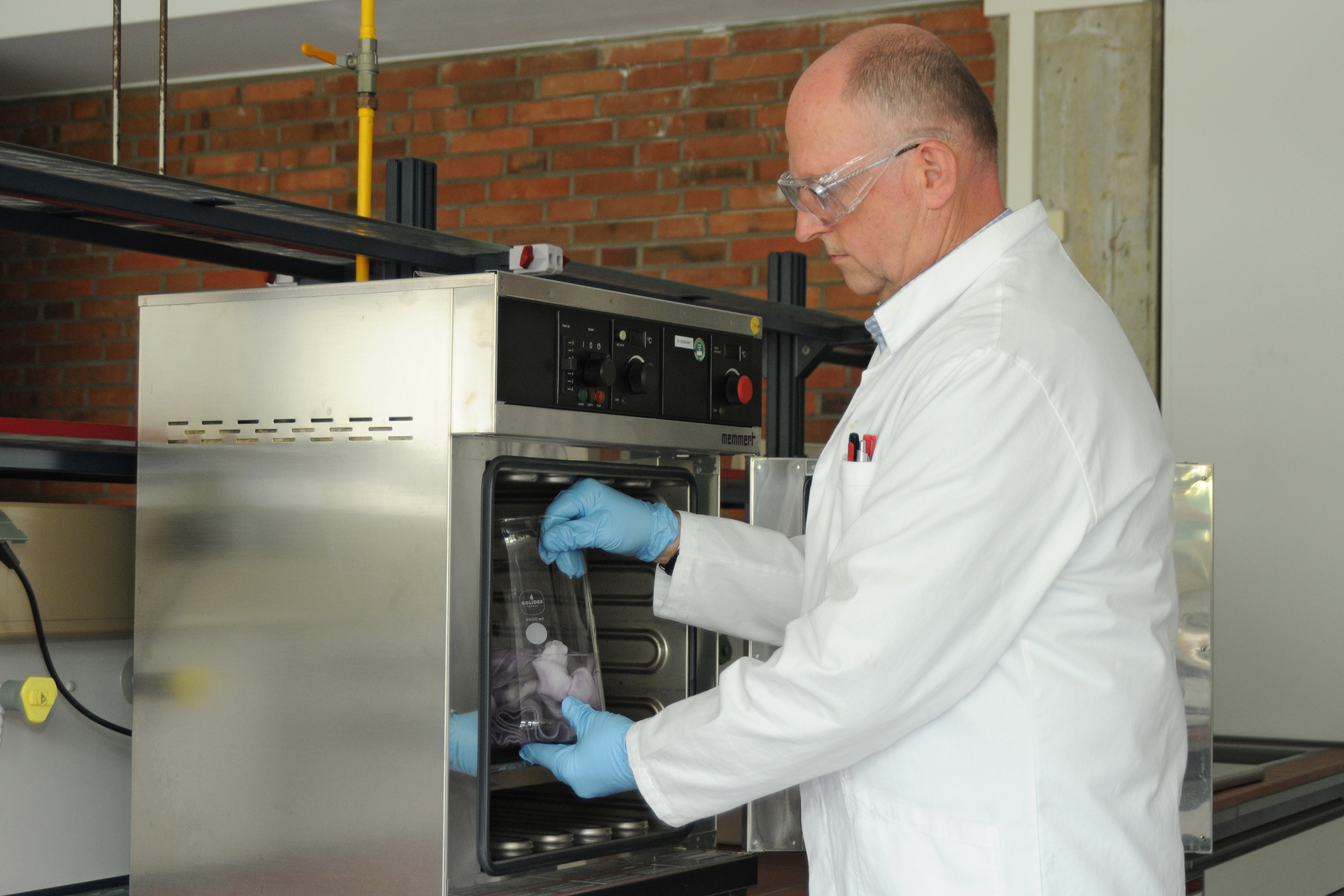 In einer wässrigen Nanogold-Lösung lässt Sietz Textilien die Goldpartikel aufnehmen – im Wärmeschrank wird der Prozess des Einwirkens erheblich verkürzt. Die Konzentration der Goldpartikel in der Lösung steuert die Wirksamkeit der Textilien. Zur Untersuchung hat Sietz seine textilen Proben ins Labor für Mikrobiologie am Fachbereich Life Science Technologies der Hochschule OWL geschickt. Ergebnis: Mit Nanogold beschichtete Baumwollfasern zeigen im für diese Anwendungen üblichen Hemmhoftest gemäß DIN 20645 eine keimreduzierende Wirkung gegenüber dem Aknehautkeim. „Dies lässt erwarten, dass sich aknebedingte Hautentzündungen durch Baumwollunterwäsche reduzieren lassen. Untersuchungen in Richtung Unterwäsche für Neurodermitiker müssen noch vertieft werden – jedoch gehe ich davon aus, dass sich hier bei höherer Goldkonzentration eine vergleichbare Wirksamkeit einstellt“, so der Chemiker. Neben Baumwollunterwäsche sind auch andere textile Produkte denkbar: Bettwäsche, Frotteestoffe, Pflaster.