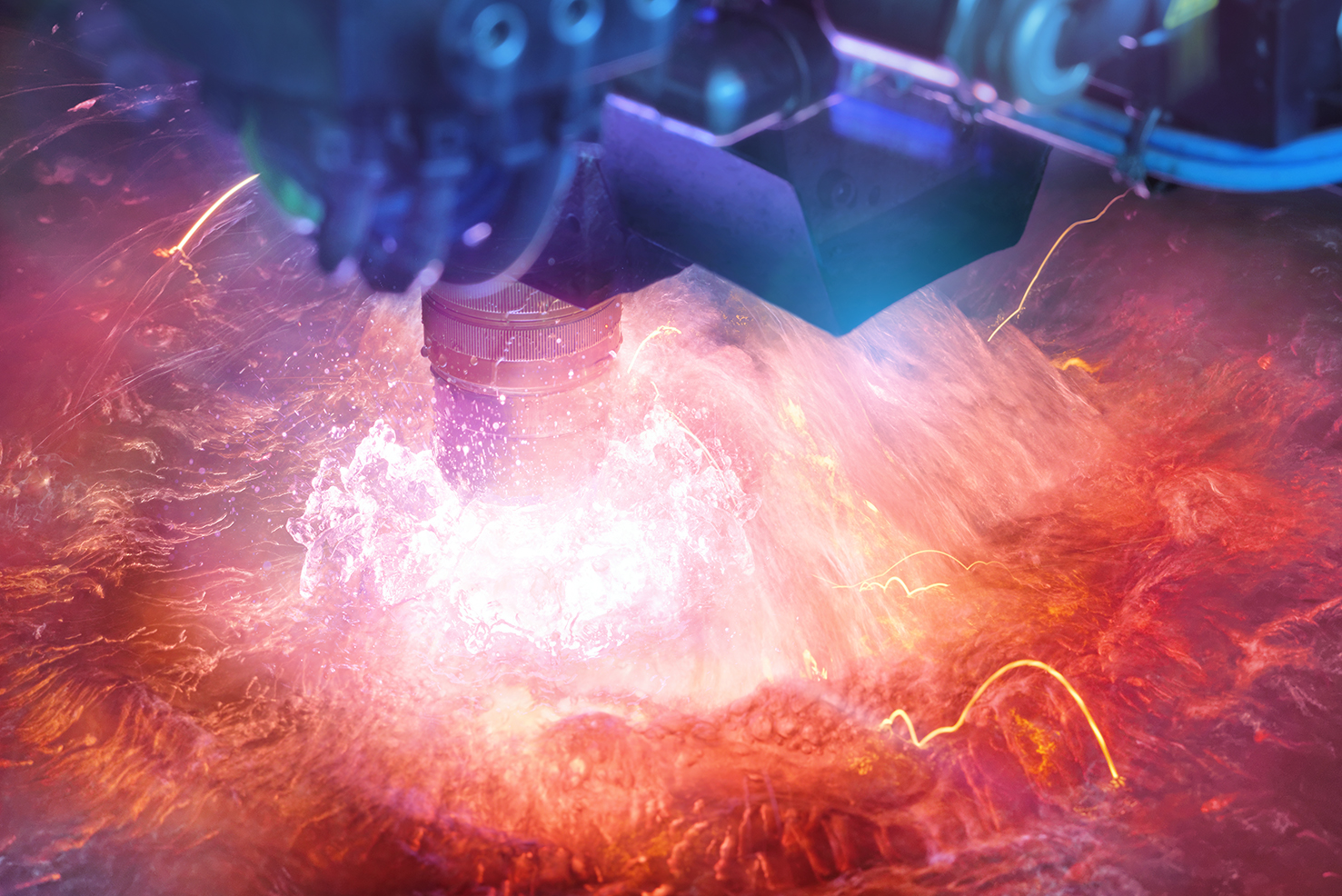 Dank der extrem hohen Temperatur, die fünf Mal heißer ist als die Oberfläche der Sonne, kann der Plasmastrahl durch den harten Werkstoff wie durch ein weiches Stück Butter gleiten. All dies geschieht unter Wasser, denn das Material muss sofort gekühlt werden.