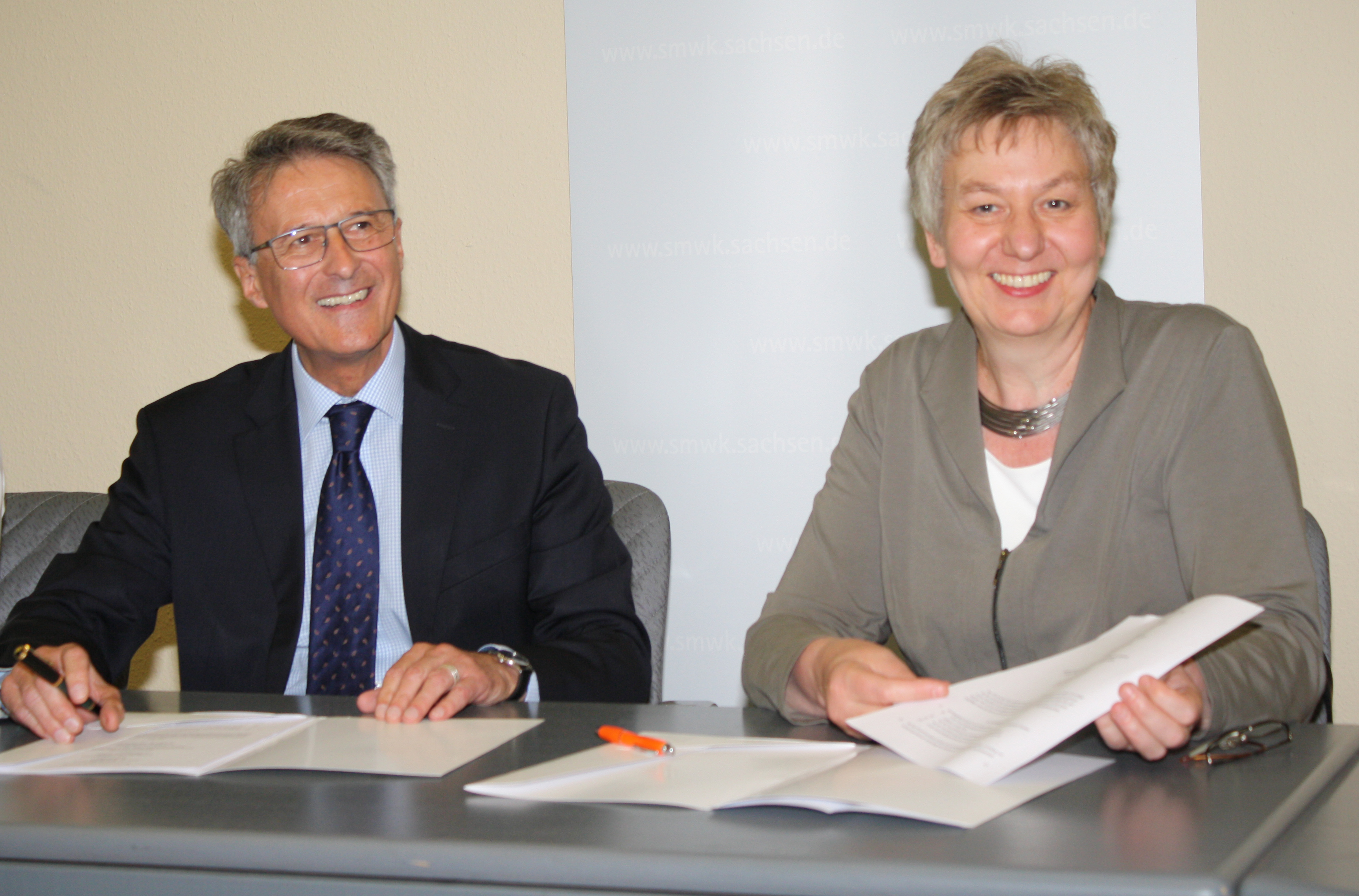 Am Montag unterzeichneten die Landesarchäologin des Landesamtes für Archäologie Sachsen (LfA) Dr. Regina Smolnik und der Rektor der Fachhochschule Dresden (FHD) Rolf Pfrengle einen Kooperationsvertrag, mit dem die beiden Wissenschaftseinrichtungen eine Intensivierung der studentischen Ausbildung in praxisnahen Bereichen anstreben.