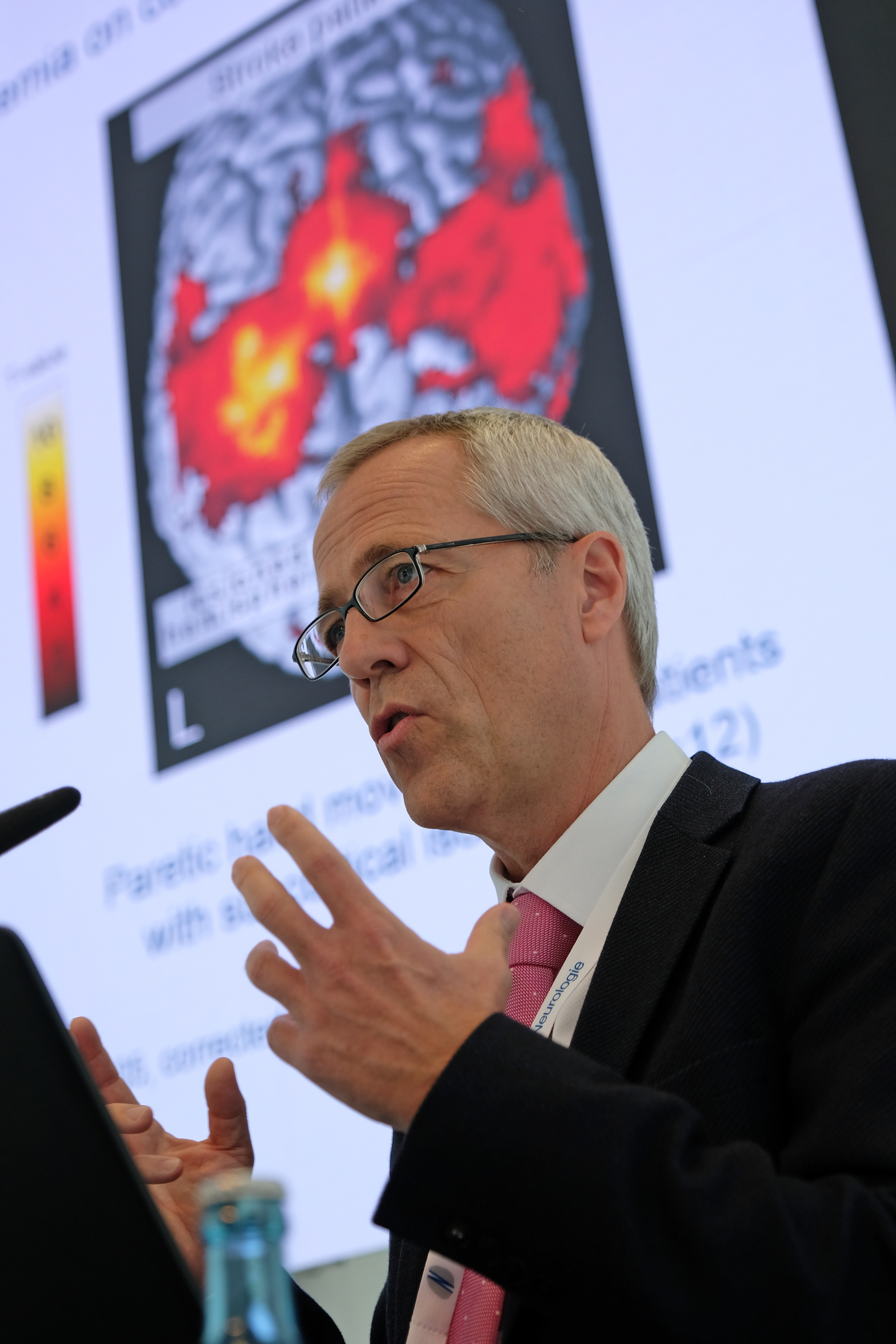 „Wichtig ist, dass die Forschung zu innovativen Therapieansätzen in der Neurorehabilitation verstärkt wird“, betont Professor Fink. Die jüngsten Erkenntnisse zur Plastizität des menschlichen Gehirns zeigen, dass noch bessere Rehabilitationsergebnisse möglich sind. Eine große Chance bieten nicht invasive neuromodulatorische Verfahren wie die transkranielle Magnetstimulation (TMS) oder die transkranielle Gleichstromstimulation (TDCS), die begleitend zur Standardtherapieverfahren der Rehabilitation eingesetzt werden können. So konnte die Arbeitsgruppe von Prof. Agnes Flöel an der Berliner Charité zeigen, dass Patienten mit chronischer Sprachstörung (Aphasie) von einer Behandlung mit tDCS im Vergleich zu einer Schein-Stimulation auch noch nach sechs Monaten alltagsrelevant profitieren. Ähnliche Effekte konnte die Arbeitsgruppe von Prof. Gereon Fink, Uniklinik Köln, bei Patienten mit Halbseitenlähmung in der Frühphase der Rehabilitation mittels TMS erzielen: Im Vergleich zur Scheinstimulation verbesserte sich die Handfunktion der TMS-stimulierten Patienten, wobei die Effekte auch noch drei Monate nach der Rehabilitation nachzuweisen waren. „Diese ermutigenden Studienergebnisse belegen eindrucksvoll das Potenzial neurowissenschaftlich basierter Forschungsansätze zu innovativen Therapieansätzen in der Neurorehabilitation“, sagt Fink.