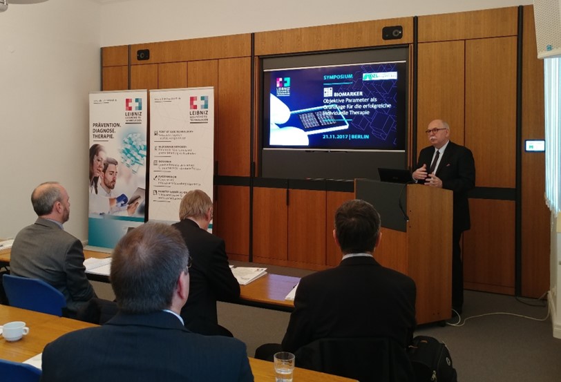 Krankheiten früh und exakt vorhersagen und Patienten individuell und effektiv behandeln – das sind die Ziele der modernen Medizin. Dafür braucht die medizinische Forschung jedoch objektive biologische Merkmale, sogenannte Biomarker. Mit Hilfe solcher eindeutig messbaren Parameter sind Ärzte in der Lage, fundierte Therapie-Entscheidungen für Krebs, Herz-Kreislauf-Erkrankungen, Asthma und chronisch-obstruktive Lungenerkrankungen (COPD) zu treffen. Experten auf diesem Gebiet versammelten sich am 21.11.2017 in Berlin beim Symposium „Biomarker“ von Leibniz Gesundheitstechnologien, um den gegenwärtigen Stand der Forschung und künftige Entwicklungen zu diskutieren.