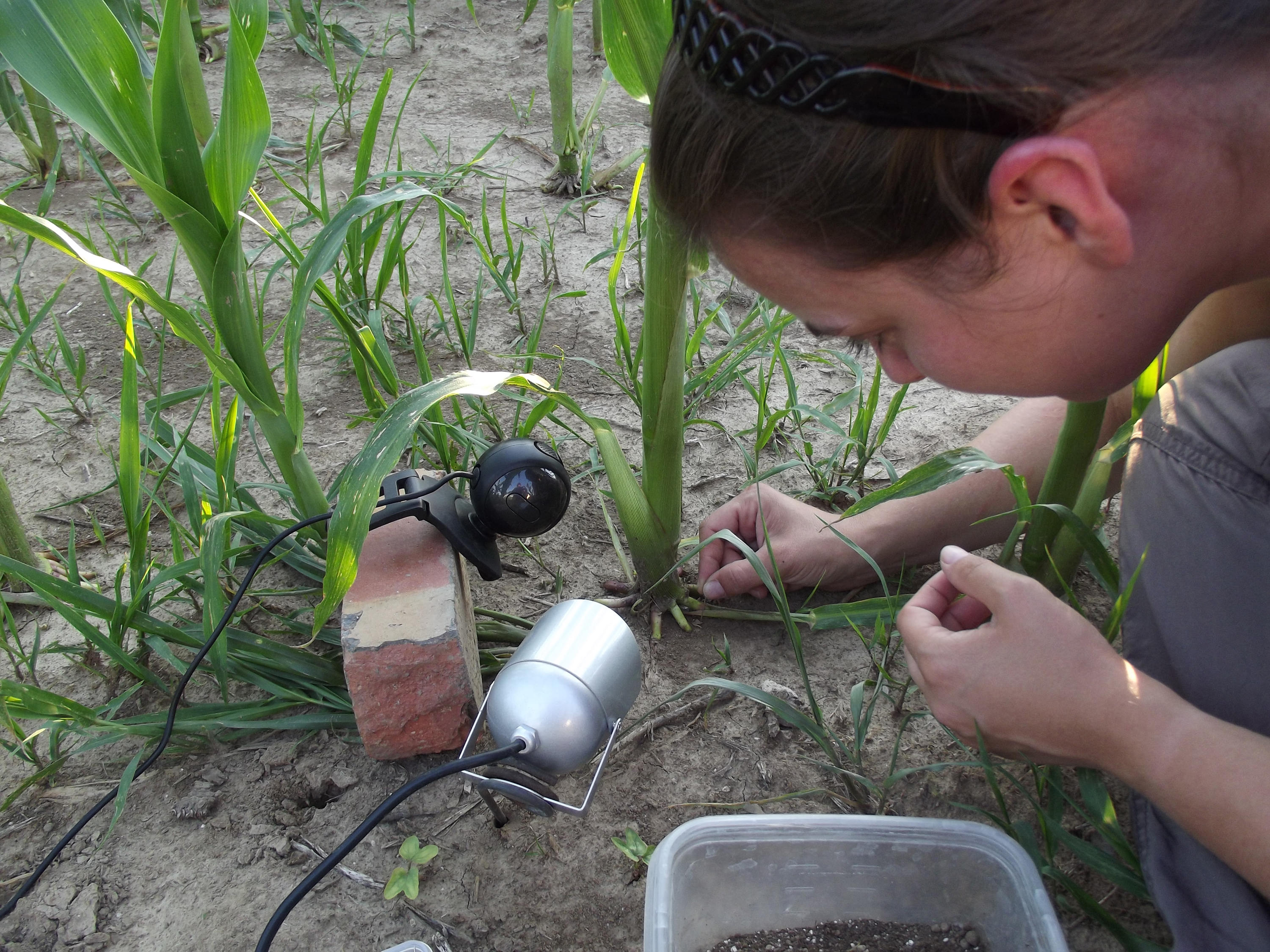 Die biologische Schädlingsbekämpfung mit Nematoden (Fadenwürmern) schien einmal vielversprechend, nachdem frühere Studien, an denen auch das Max-Planck-Institut für chemische Ökologie beteiligt war, darauf hinwiesen, dass der Mais über seine Wurzeln den Botenstoff (E)-beta-Caryophyllen abgibt, um nützliche Nematoden anzulocken. Solche entomopathogenen Fadenwürmer im Boden, wie der Nützling Heterorhabditis bacteriophora, haben das Potenzial, in wurzelschädigende Käferlarven einzudringen. Mit Hilfe eines symbiotischen Bakteriums, das die Nematoden in den Larven absondern, werden die Wurzelschädlinge abgetötet und die Nematoden vermehren sich in den Kadavern ihrer Wirte. Der Maiswurzelbohrer sollte so wirksam biologisch bekämpft werden.